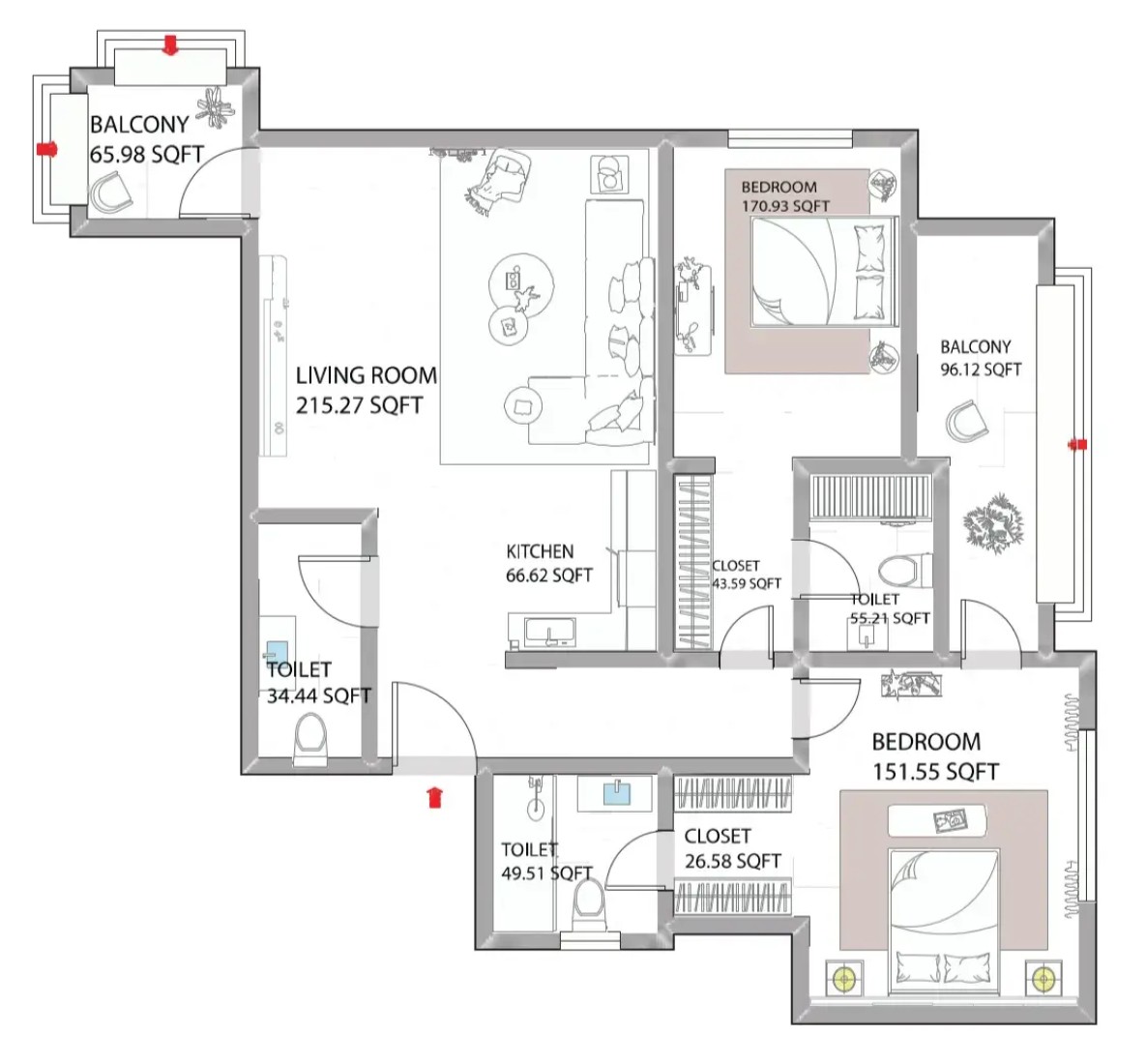 The thoughtfully crafted living spaces at Ajman Creek Towers set the stage for the living experience that awaits its residents