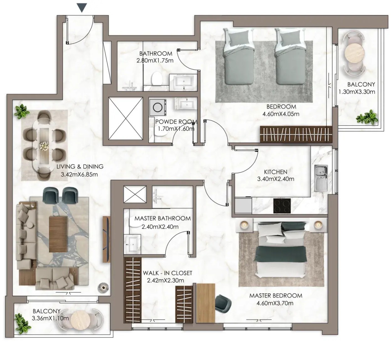 The residences at Ajman Pearl Tower feature spacious layouts, elegant interiors, and high-quality finishes. With both 1 and 2-bedroom apartments available, each home is crafted to offer privacy, tranquility, and a strong sense of space. Whether with an open or closed kitchen layout, the apartments reflect attention to detail and a commitment to functional, stylish living. Floor-to-ceiling windows invite natural light while framing dynamic city views.
