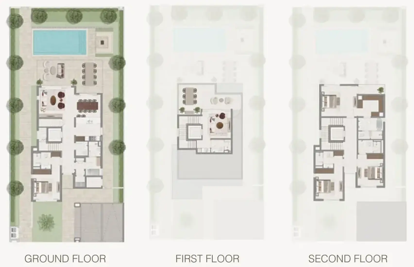 Avelia at The Valley presents an elegant architectural expression shaped by the vast desert landscapes, lush meadows, and gentle horizons that characterize this serene master community. The villas feature refined contemporary forms softened by natural tones and organic lines, blending harmoniously with the surrounding greenery. Embracing the natural topography of wadis, mountains, and landscaped trails, Avelia creates a tranquil visual identity where each home feels rooted in nature and part of a calm, picturesque environment.