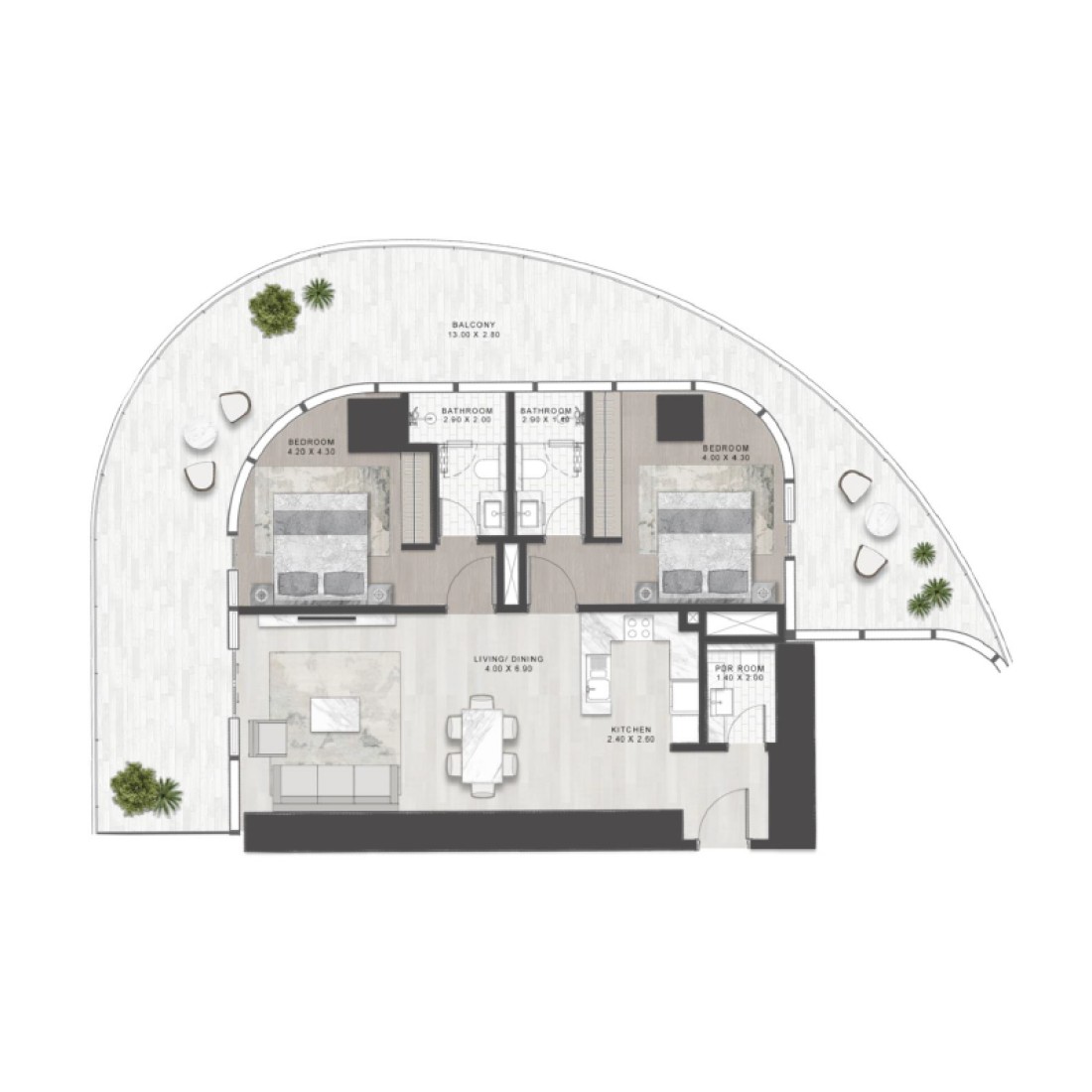 Living spaces in DAMAC Casa are a blend of tranquillity and tropical luxury, imbued with the calming essence and serene ambiance of water-inspired designs. Experience the aesthetic enchantment of reflective surfaces and fluid patterns that pirouette around the room, surrounding you in aquatic elegance and dreamlike serenity.