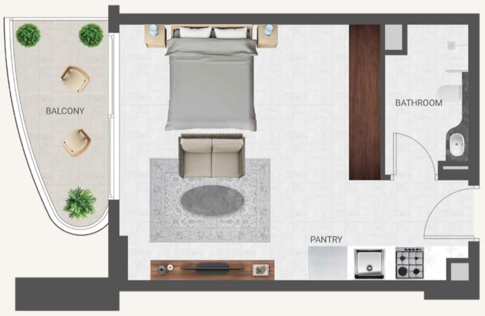 The residences at Crown Palace include a curated selection of studios, one-bedroom, and two-bedroom apartments. Each home is designed with refined details and interiors that combine classic European inspiration with contemporary comfort, creating warm and elegant living environments. Expansive layouts and thoughtful finishes ensure that every unit feels both stylish and welcoming.