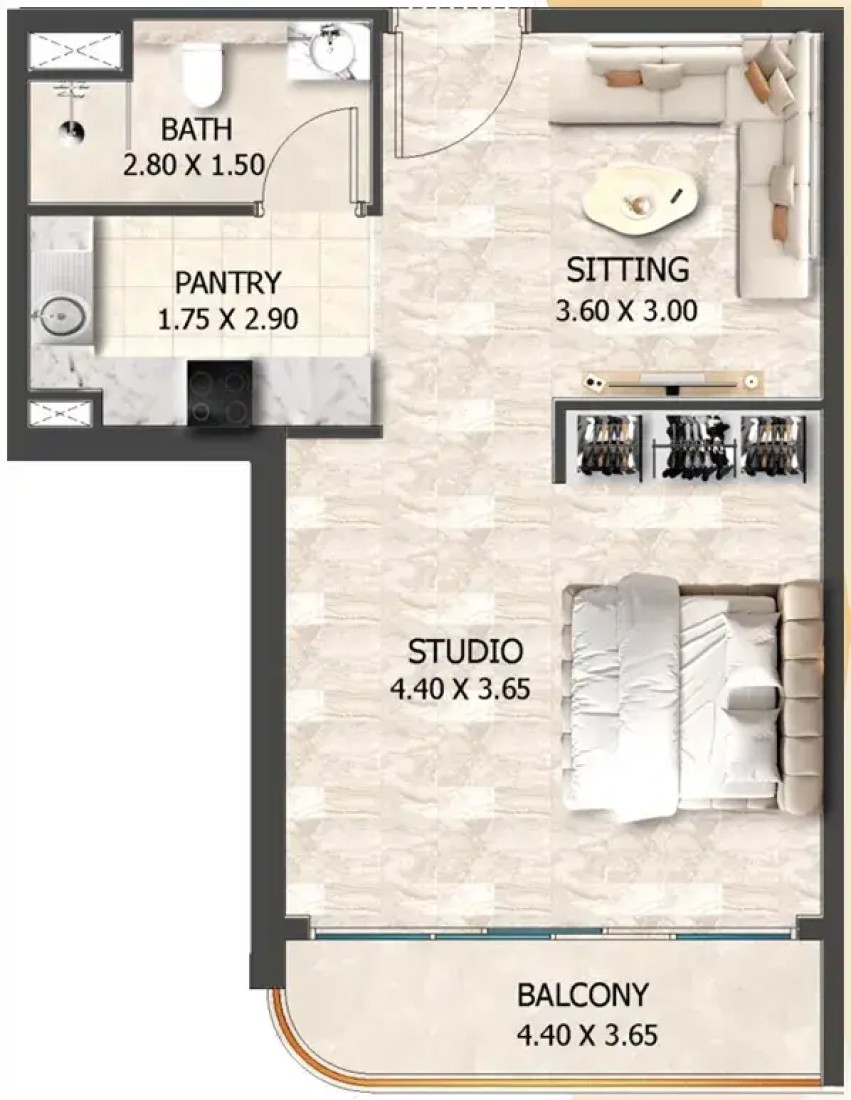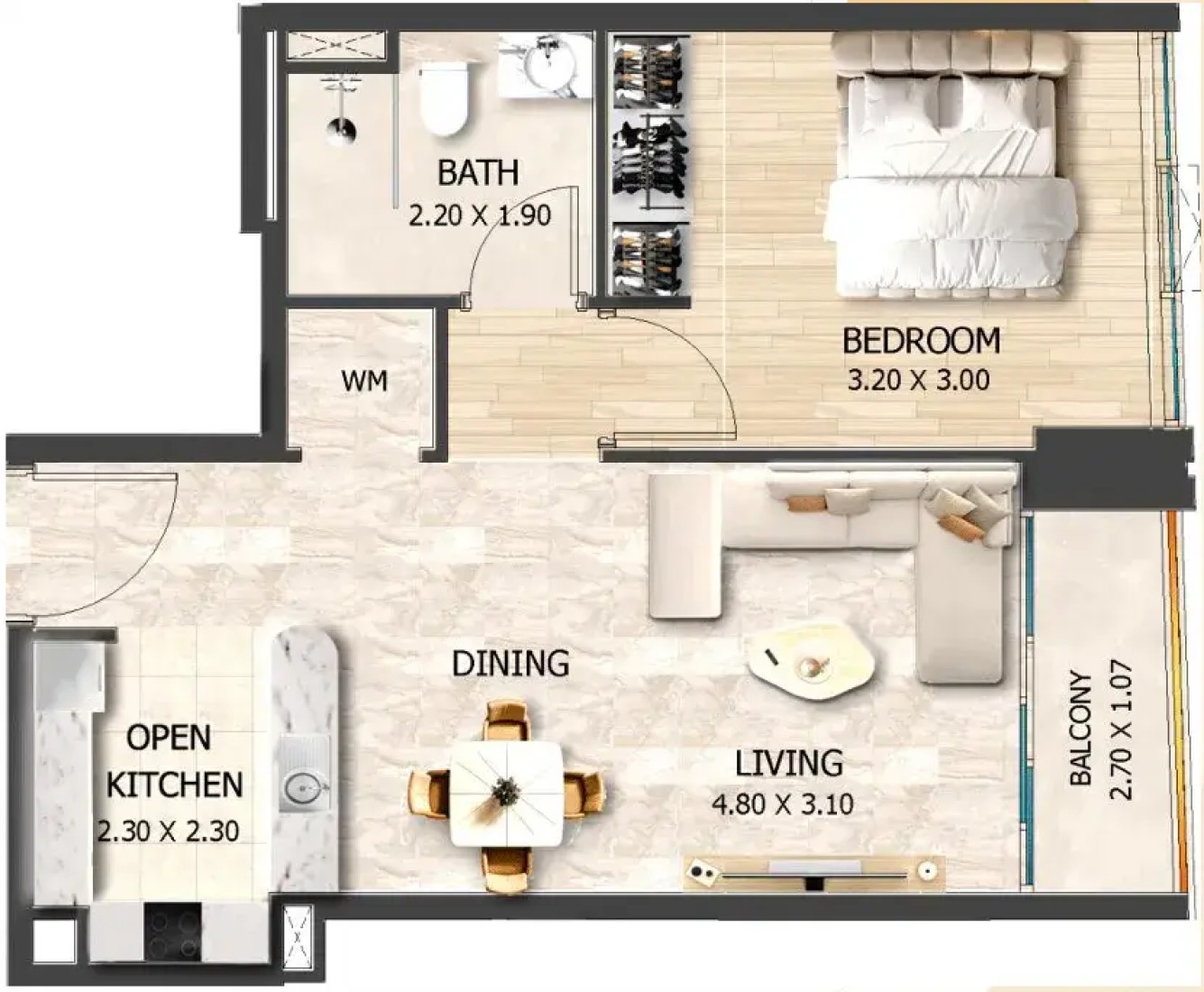 Interiors at Crystal Tower by VHS are designed with functionality and modern living in mind. The apartments are delivered without furniture and feature high-quality finishes with modern materials, providing a neutral and versatile interior palette. Practical layouts, contemporary detailing, and durable finishes allow residents to personalize their homes while benefiting from a well-executed, move-in-ready residential product.