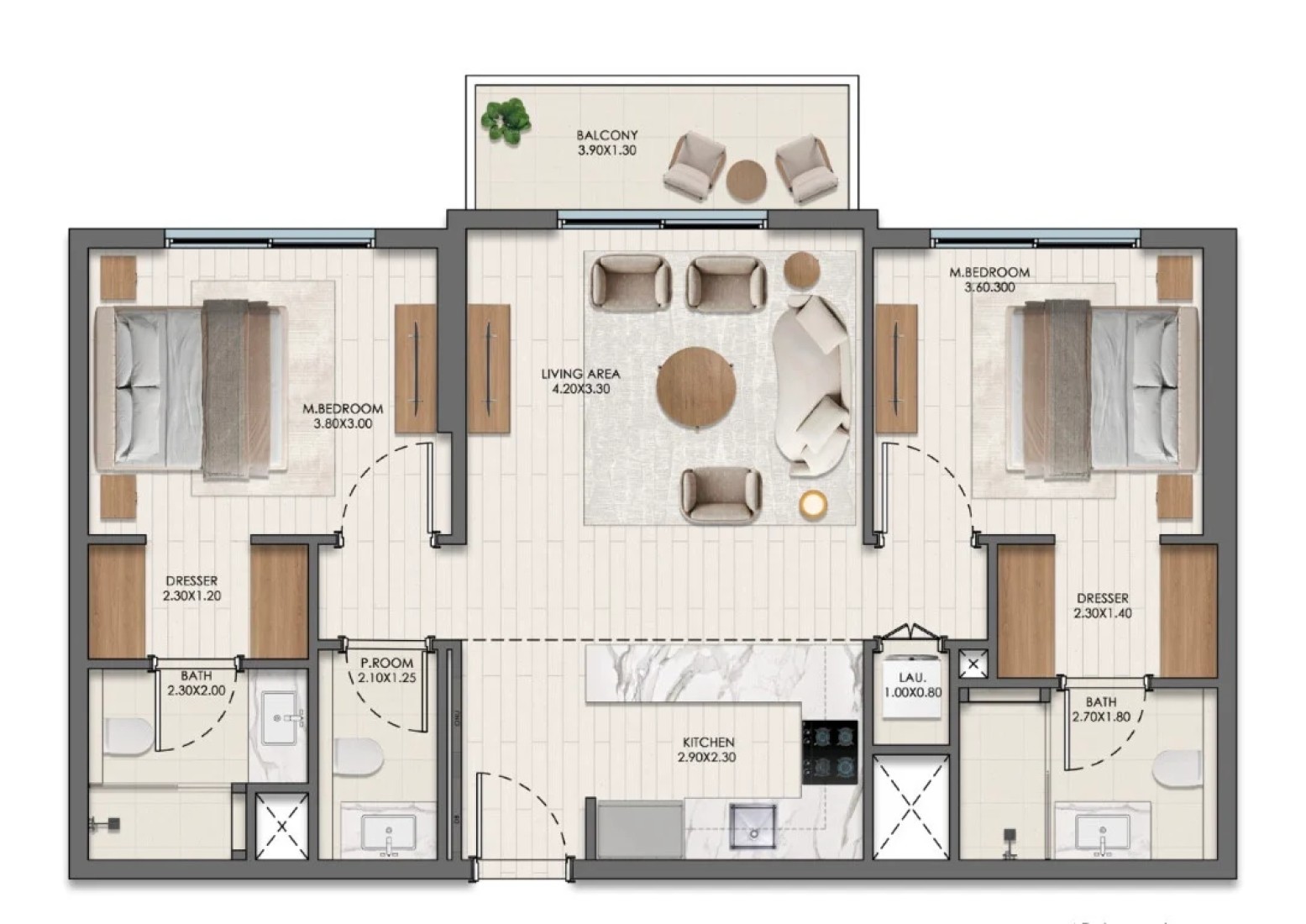 Situated on a prominent corner within Town Square, Evelyn on The Park offers effortless access to the heartbeat of the community. Just steps from West Park, residents are welcomed into leafy green spaces, children’s play areas, and tranquil pockets ideal for relaxation or quiet connection. With the main park and a nearby 4-star hotel only a short walk away, life here unfolds with ease, blending the vibrancy of community living with the calm of a parkside setting, and creating a home where everyday moments feel grounded, memorable, and truly part of something larger. A collection of 1, 2, 3-bedroom residences along with stunning duplexes designed with an elegant, contemporary sensibility. Open, flowing layouts and generous windows invite natural light and views of the surrounding park, creating interiors that feel calm, welcoming, and beautifully composed. Here, modern living is expressed with subtle elegance, a thoughtful balance of design, comfort, and everyday ease at the heart of West Park.