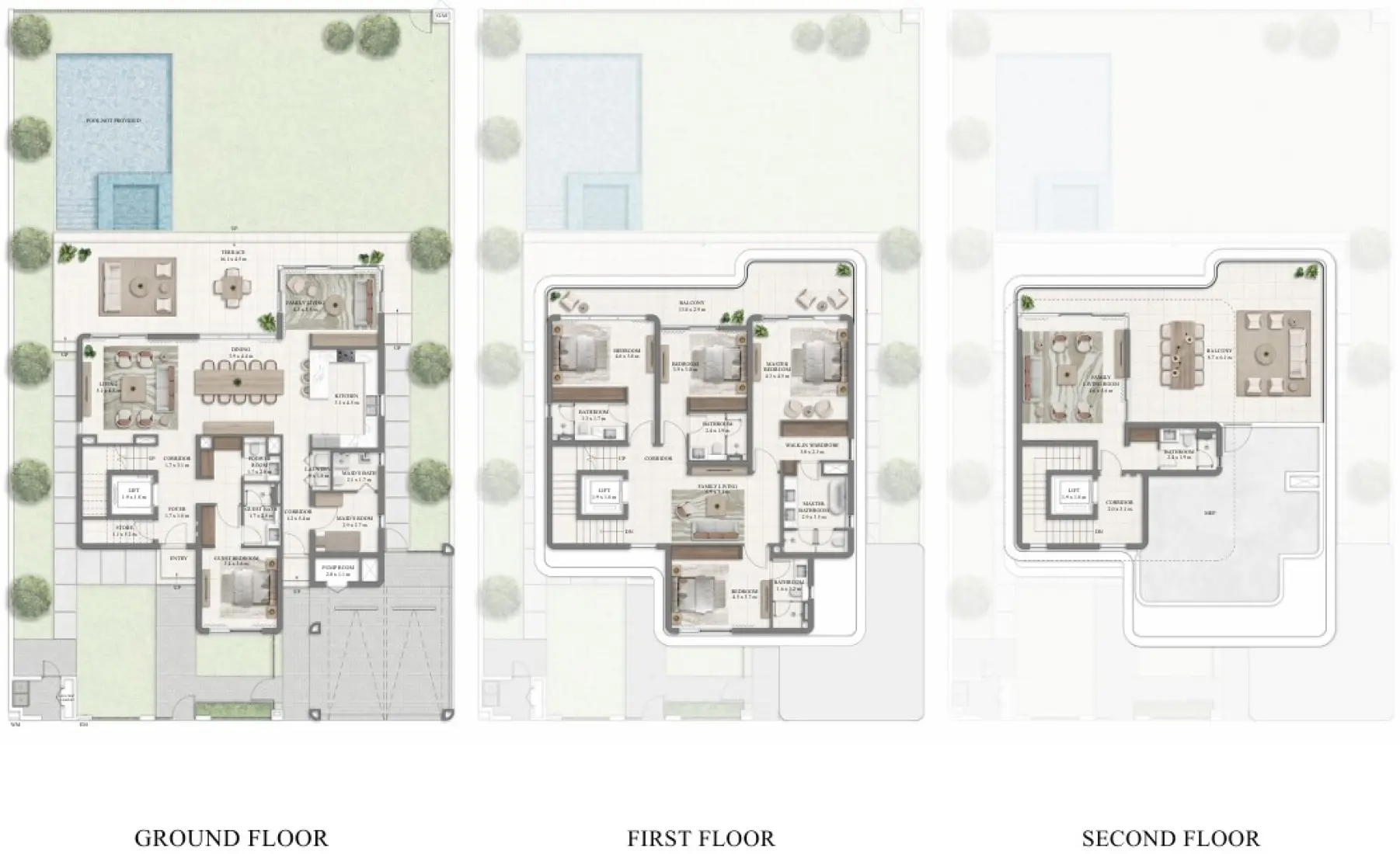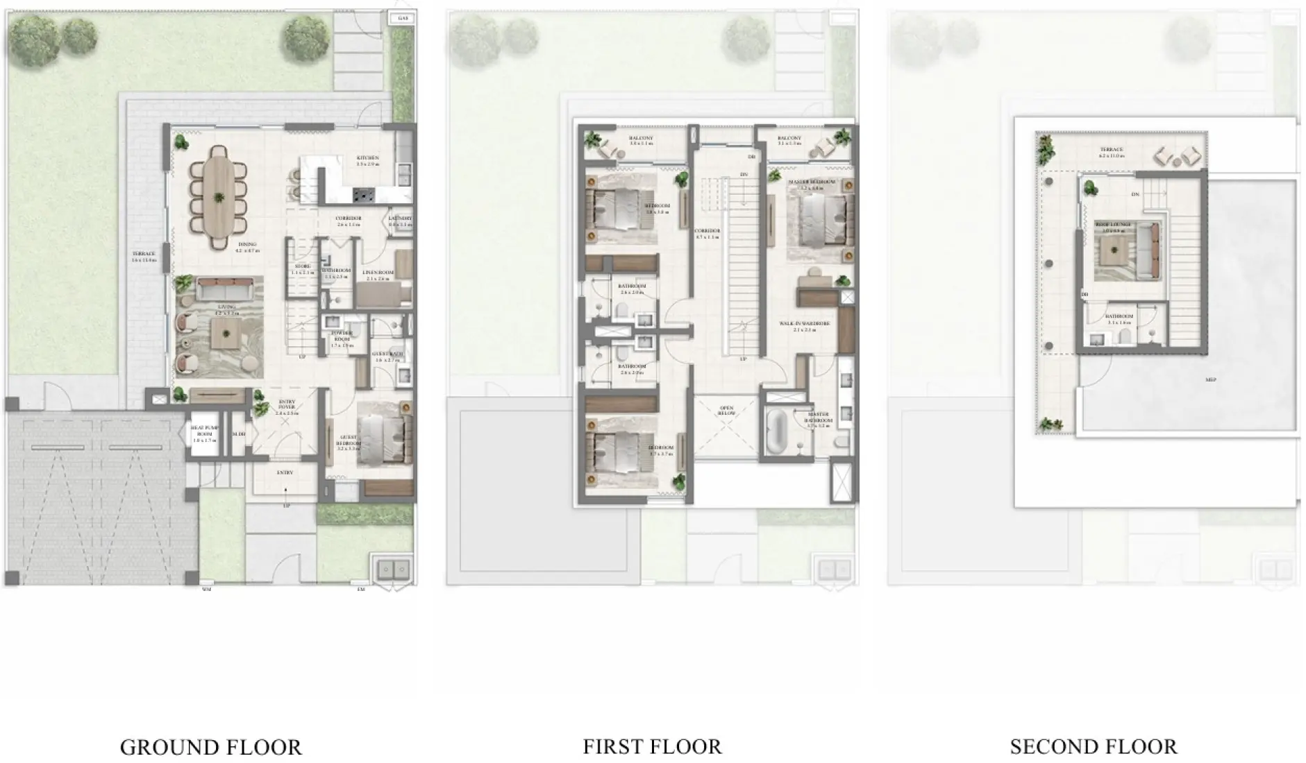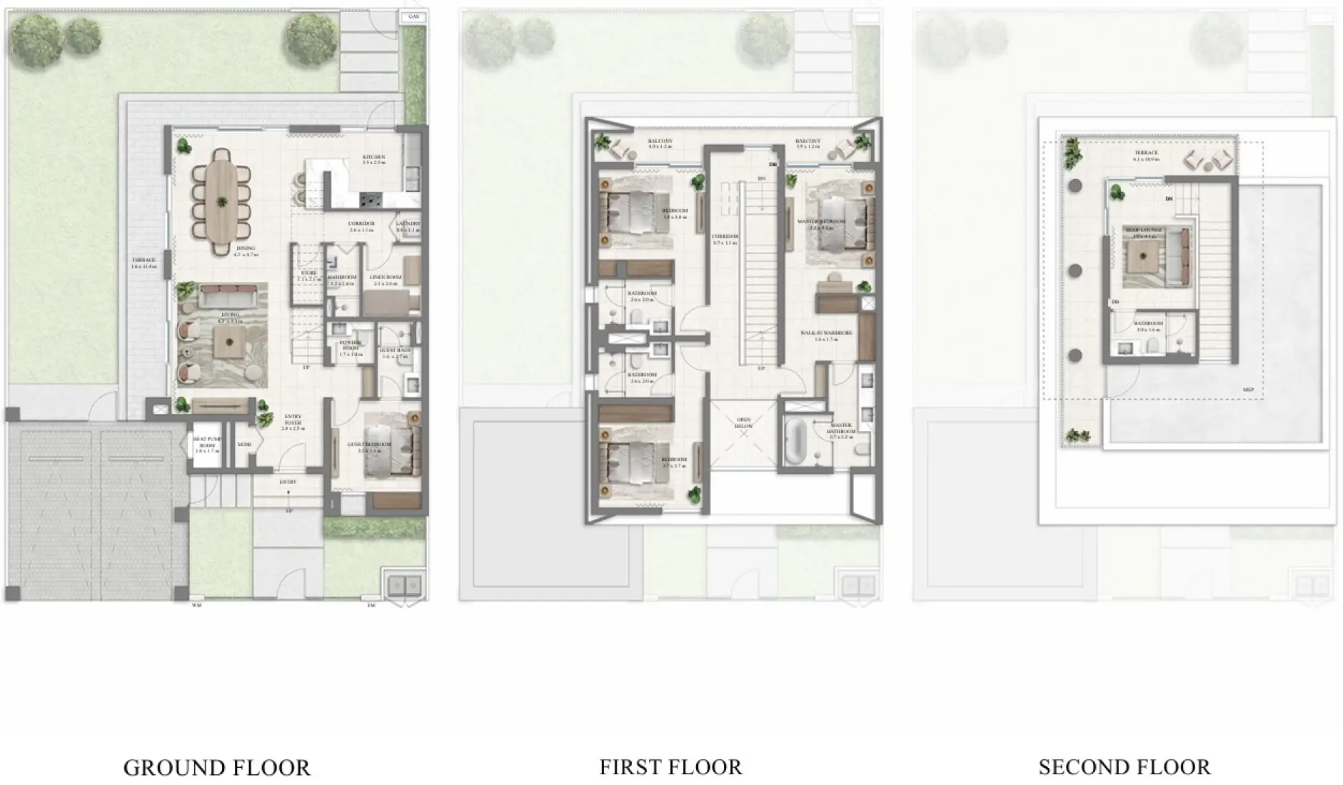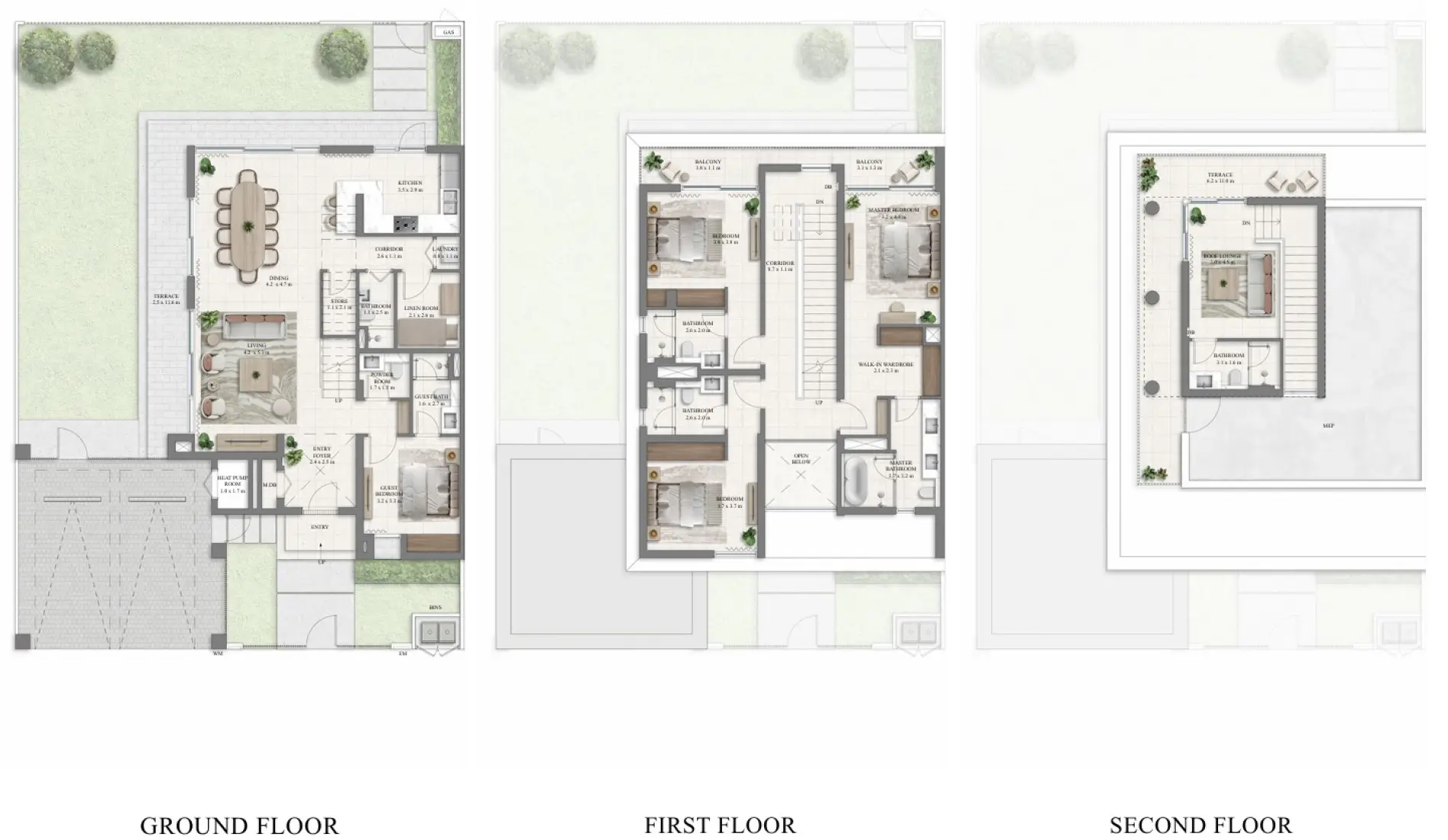The villas at Farm Grove are about living in harmony with nature and the ones you love. Choose from four or five-bedroom homes featuring spacious, open-plan living for the ultimate contemporary comfort. Whether designing a garden, adding a bespoke pool, or shaping the space to your lifestyle, you create your perfect sanctuary to thrive. The residences are designed to keep the classic essence of contemporary and modern styles ingrained in all its facades. Clean lines, nature inspired hues and the play-of-light on glass elements elevate the visual appeal of the homes.