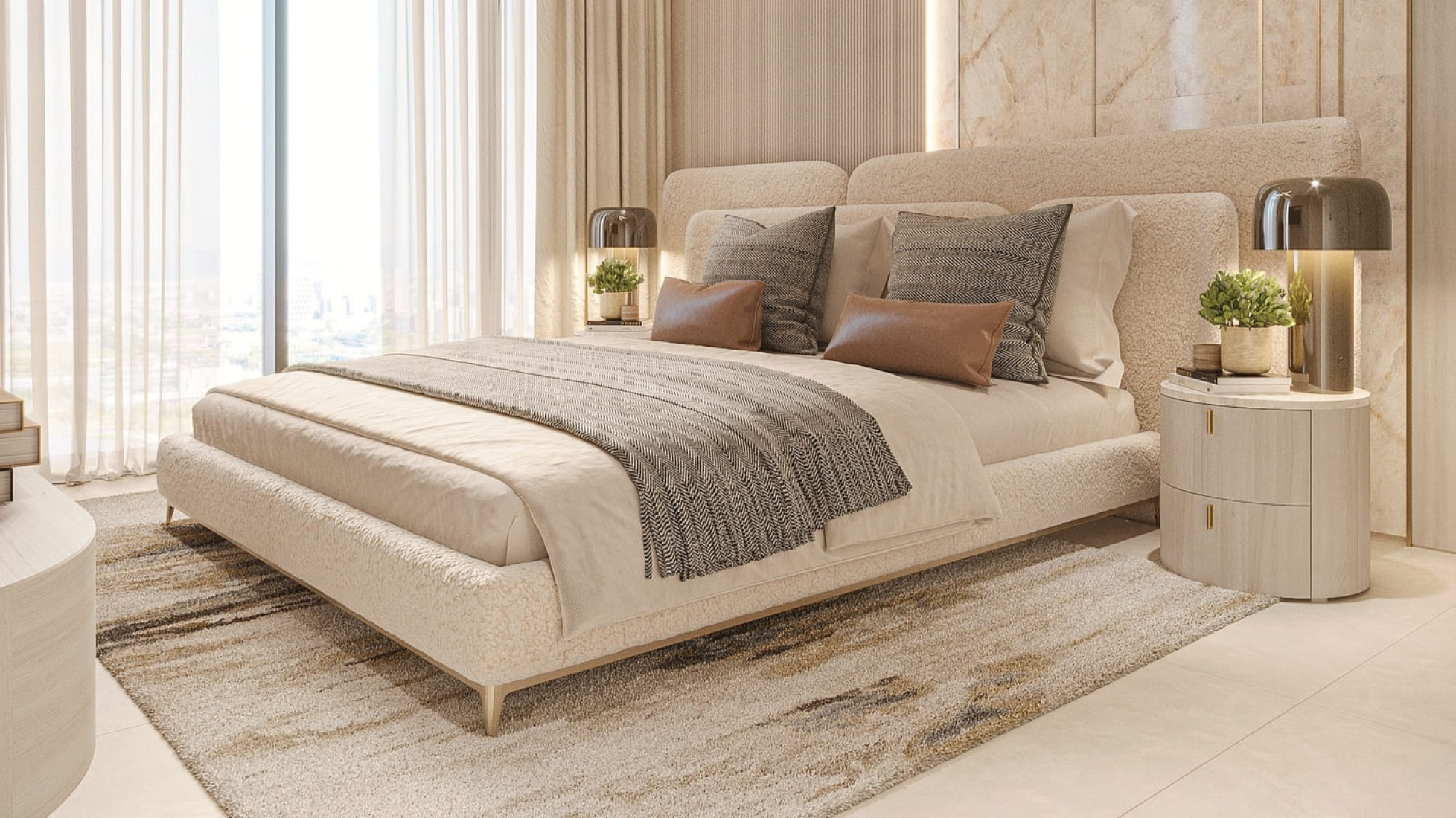 Each residence is crafted with attention to detail, featuring spacious layouts, heightened glass windows, and luxurious finishes. The interiors reflect a refined aesthetic, with European tile flooring, designer wardrobes, and a soothing color palette that enhances natural light. The smart home system, Alexa voice assistant integration, and premium European appliances add convenience and sophistication to daily life, making each home both functional and future-forward.