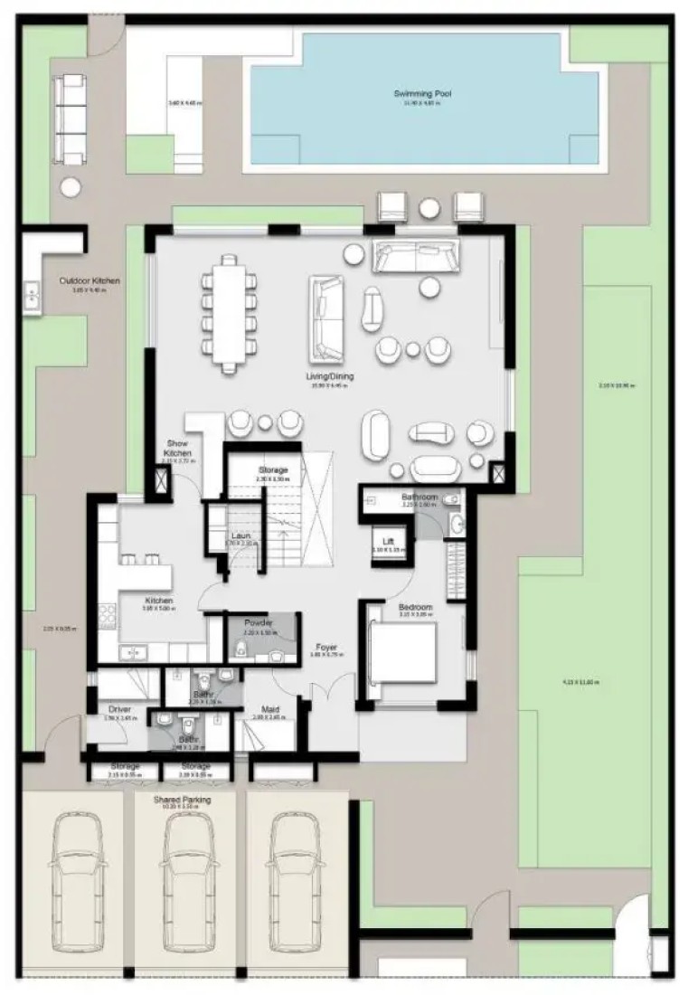 The natural lit-interiors and luxury crafted exteriors promise a higher grandeur of supremacy. Experience the lifestyle that awakes you every morning with natural sounds in a green habitat and an active life lined with massive playfields. The natural ventilation and the adaptive environments are offered with the largest swimming water lagoons, the largest community park in Sharjah, thousands of trees and unique facilities like edible gardens at your service.