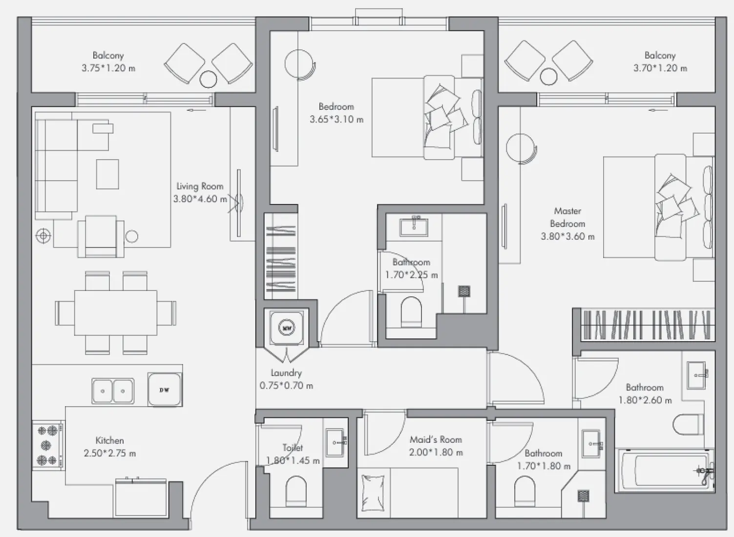 Diverse options, from studios to 3-bedroom apartments, cater to the different lifestyles of individuals, families and investors.