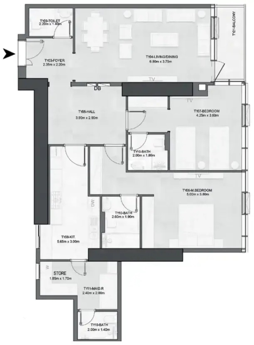 Interiors at Joud Tower are defined by modern design and refined finishes, with apartments delivered as smart homes for enhanced comfort and control. Kitchens are fitted with integrated appliances and sleek cabinetry, complemented by contemporary surfaces and functional layouts. Bedrooms feature built-in wardrobes, while living spaces are finished with high-quality materials, clean lines, and a neutral palette that allows residents to personalize their homes with ease.