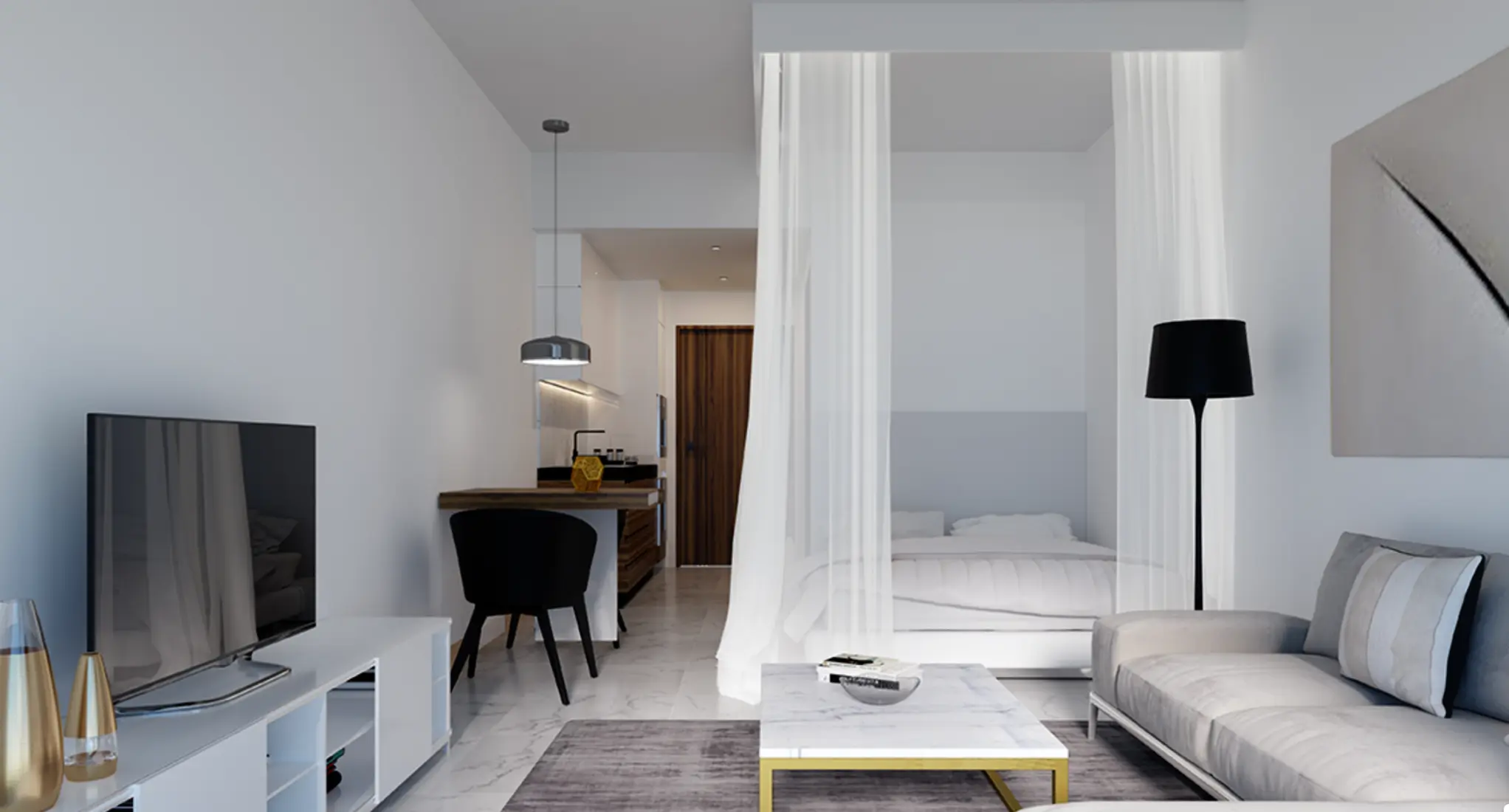Whether it is a studio, apartment, townhouse, or sky-home, Oasis 2 units are perfectly designed to satisfy all your needs and offer you a new home experience. The high-quality finishing and the elegant modern designs create a perfect environment to complement the dazzling exteriors and the resort-like lifestyle. Kitchens and Bathrooms are never a small detail; they are perfectly designed to meet your expectations of functionality and refined taste. All kitchens are equipped with kitchen cabinets and scratch-free countertops, and bathrooms, whether en-suites or guest bathrooms are fully tiled with high-quality finishing, bathtubs, and showers.