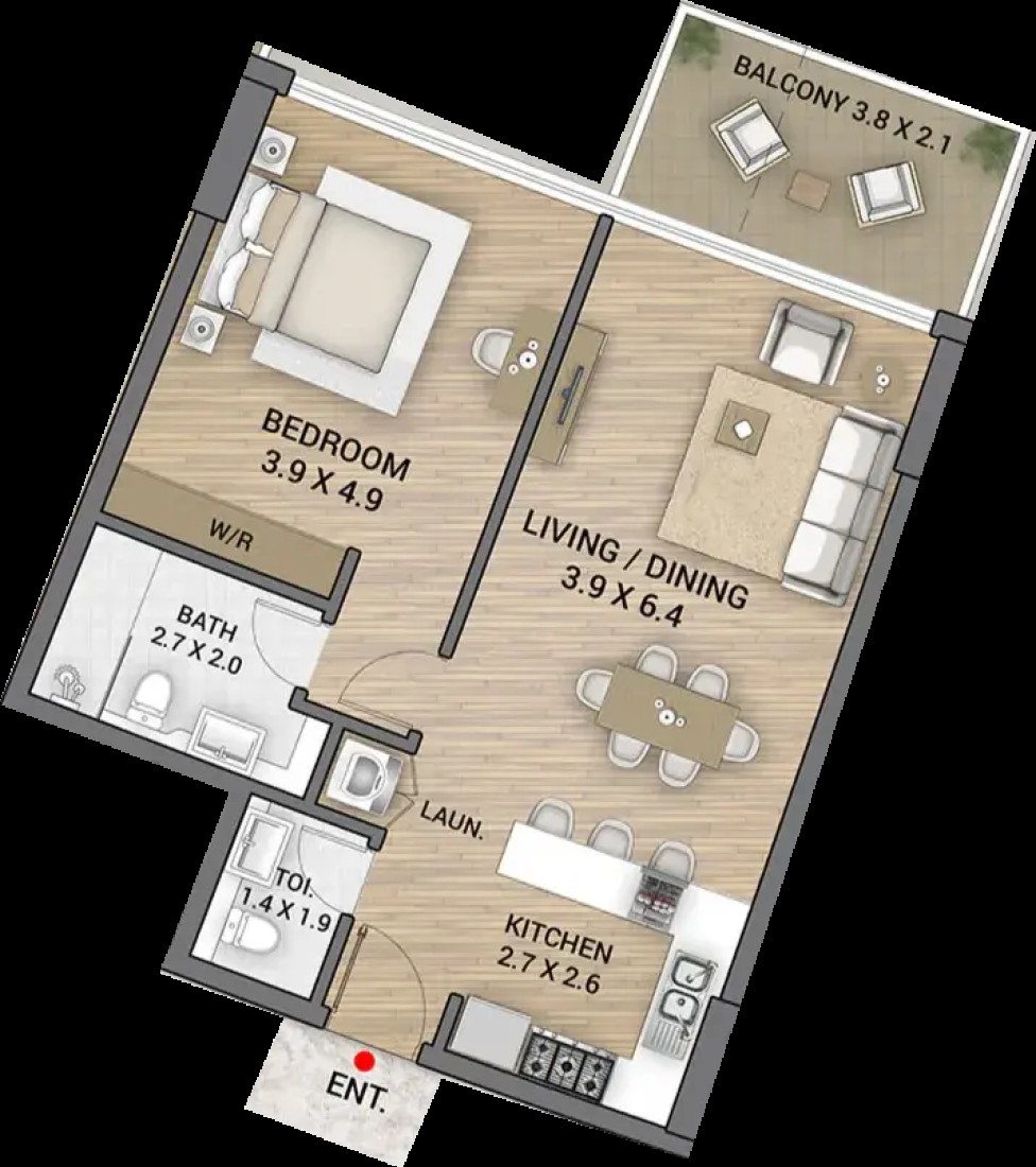 The tower features 1, 2, and 3-bedroom apartments, each designed with elegant finishes and spacious layouts to provide comfort and style.
