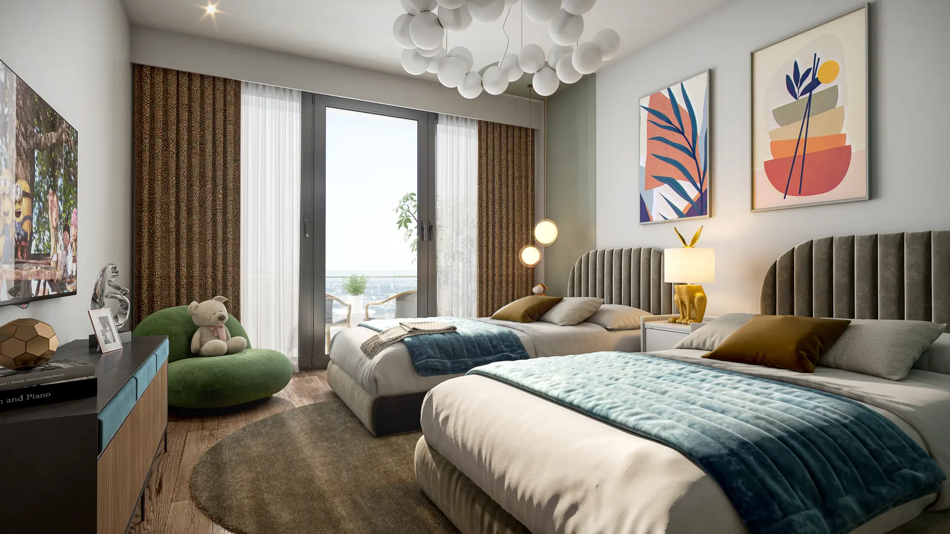 We have thought through every detail. Cozy balconies and terraces are waiting for you in the interiors. Kitchen cabinets and countertops made of high-quality materials. The bathrooms are fully tiled, equipped with guest toilets wherever applicable. The floor-to-ceiling windows are double glazed. Cozy bedrooms are equipped with built-in wardrobes.