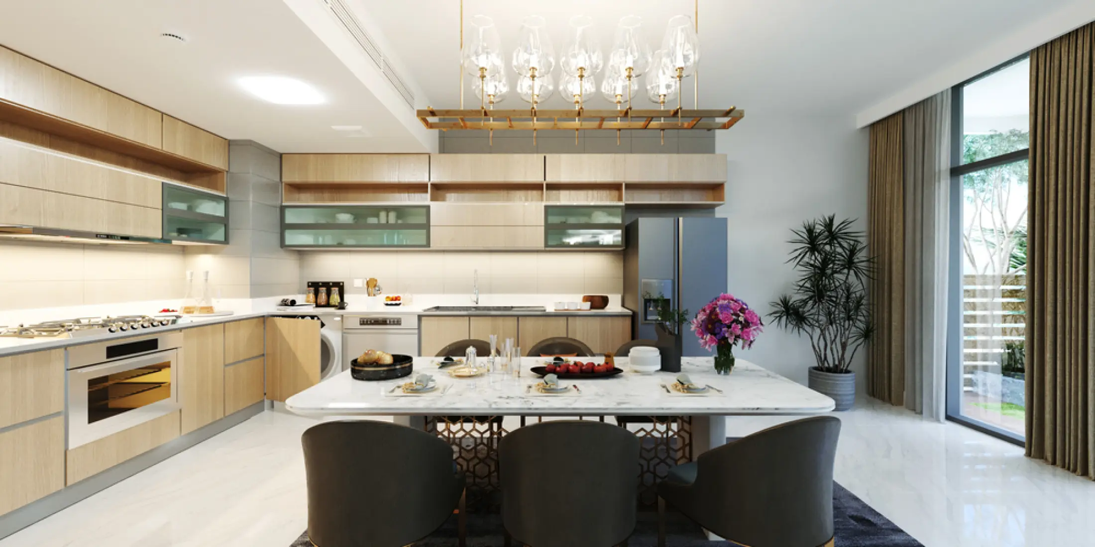 Every bit of space is a statement of class and modernity, brilliantly designed to meet all needs and tastes, with high quality finishing and neutral colour palette. Kitchens and Bathrooms are never a small detail; they are perfectly designed to meet your expectations of functionality and refined taste. All kitchens are equipped with kitchen cabinets and scratch-free countertops, and bathrooms, whether en-suites or guest bathrooms are fully tiled with high-quality finishing, bathtubs, and showers.