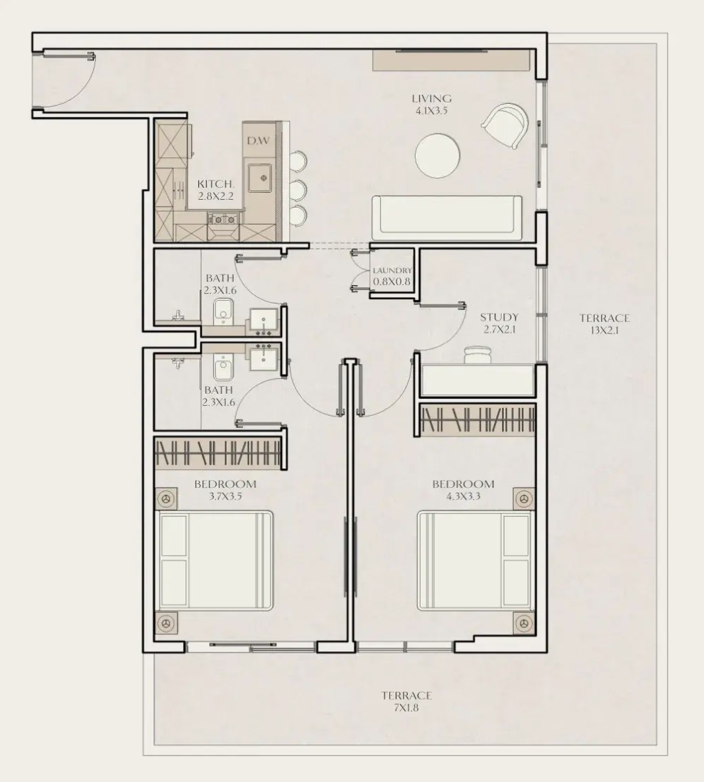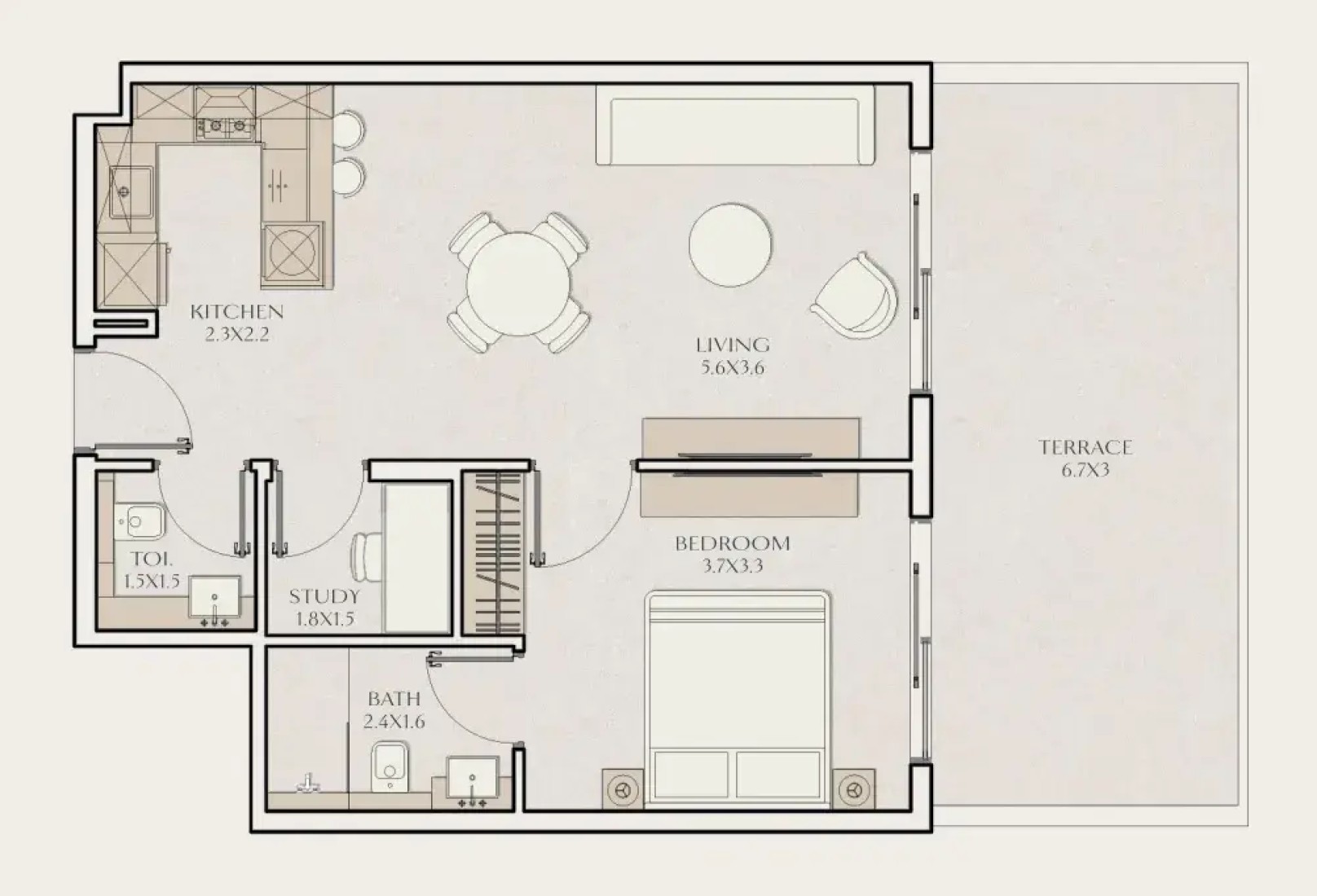 Tavora Residences is a modern residential development inspired by the elegance of European heritage and the calming tones of the desert. Located in the emerging community of Warsan 4, the project blends contemporary architecture with earthy design elements, offering a tranquil urban lifestyle with strong connections to key destinations across Dubai. With its expansive road frontage and refined exterior, Tavora stands out as a thoughtfully crafted living environment designed for comfort, serenity, and long-term value.