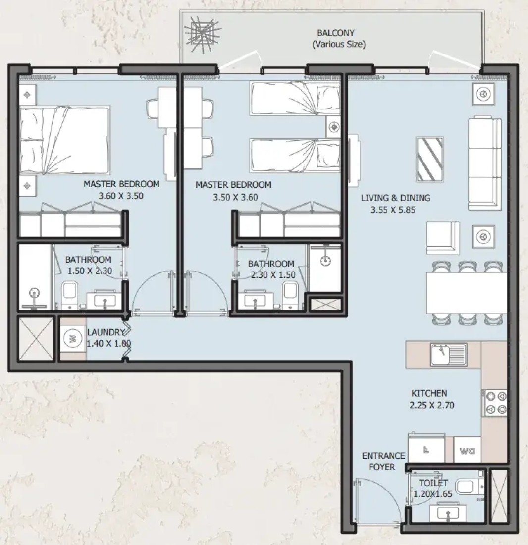 Every bit of space is a statement of class, brilliantly designed to meet all refined tastes. With contemporary designs, high-quality finishing and a neutral colour palette, Verdana townhouses are a clear manifestation of elegance, modernity, functionality. Kitchens and Bathrooms are never a small detail; they are perfectly designed to meet your expectations of functionality and refined taste. All kitchens are equipped with kitchen cabinets and scratch-free countertops, and bathrooms, whether en-suites or guest bathrooms, are fully tiled with high quality finishing, bathtubs, and showers.