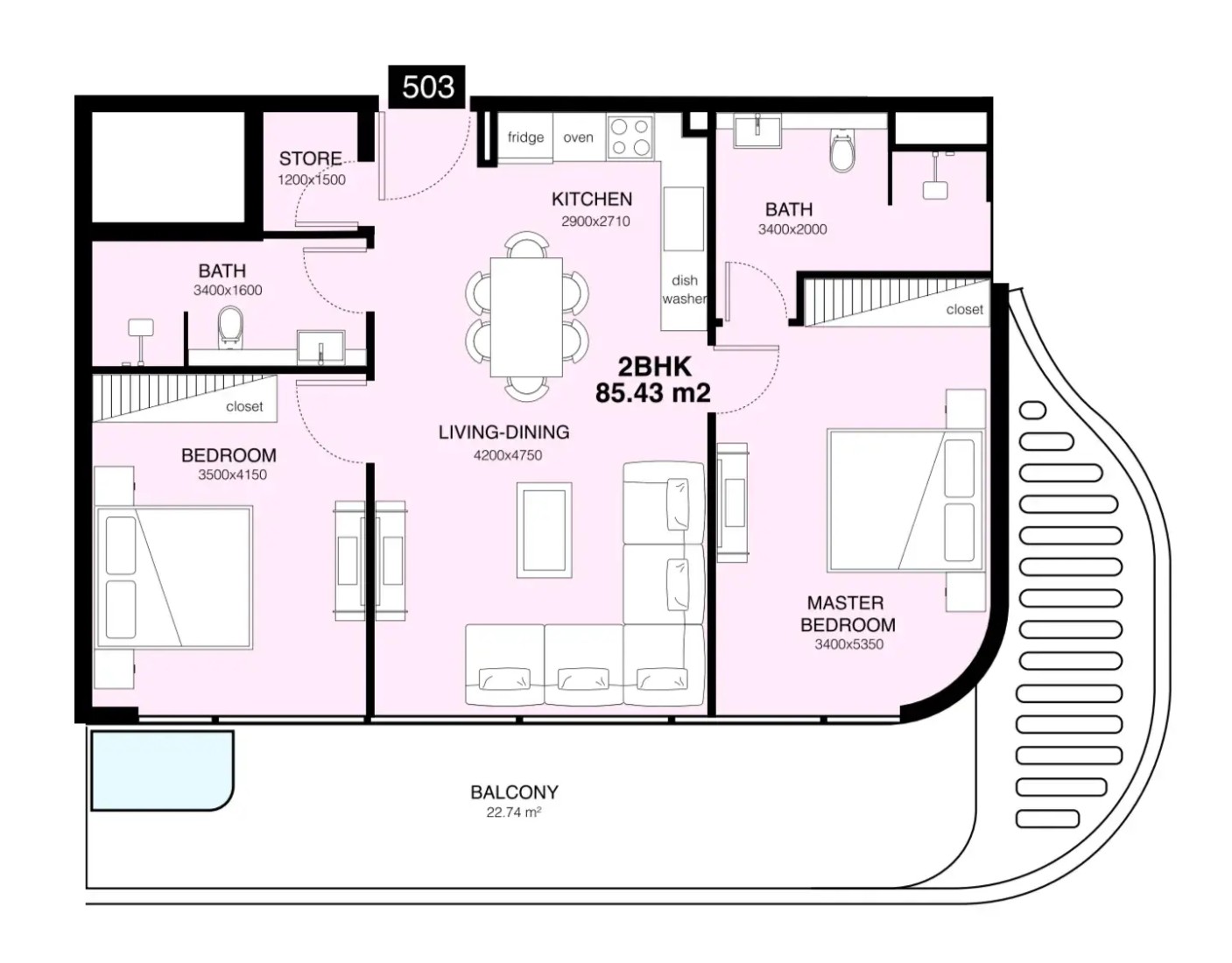 Modern finishing with high-quality materials, Italian Stone Flooring.