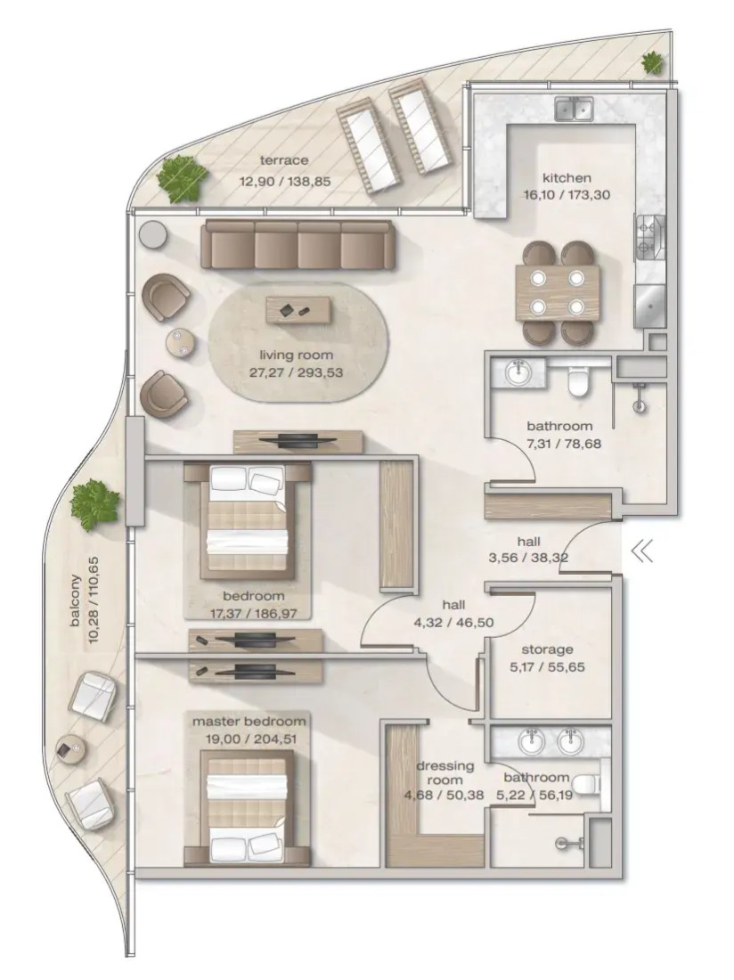 Each residence is a masterpiece of design, with contemporary aesthetics seamlessly blending with Dubai's stunning natural beauty. Whether you desire a cozy apartment or a spacious penthouse, the sophisticated finishes and premium furnishings create a haven of elegance and comfort. These homes reflect a commitment to both style and functionality, making every moment at Zephyra Residences truly exceptional.