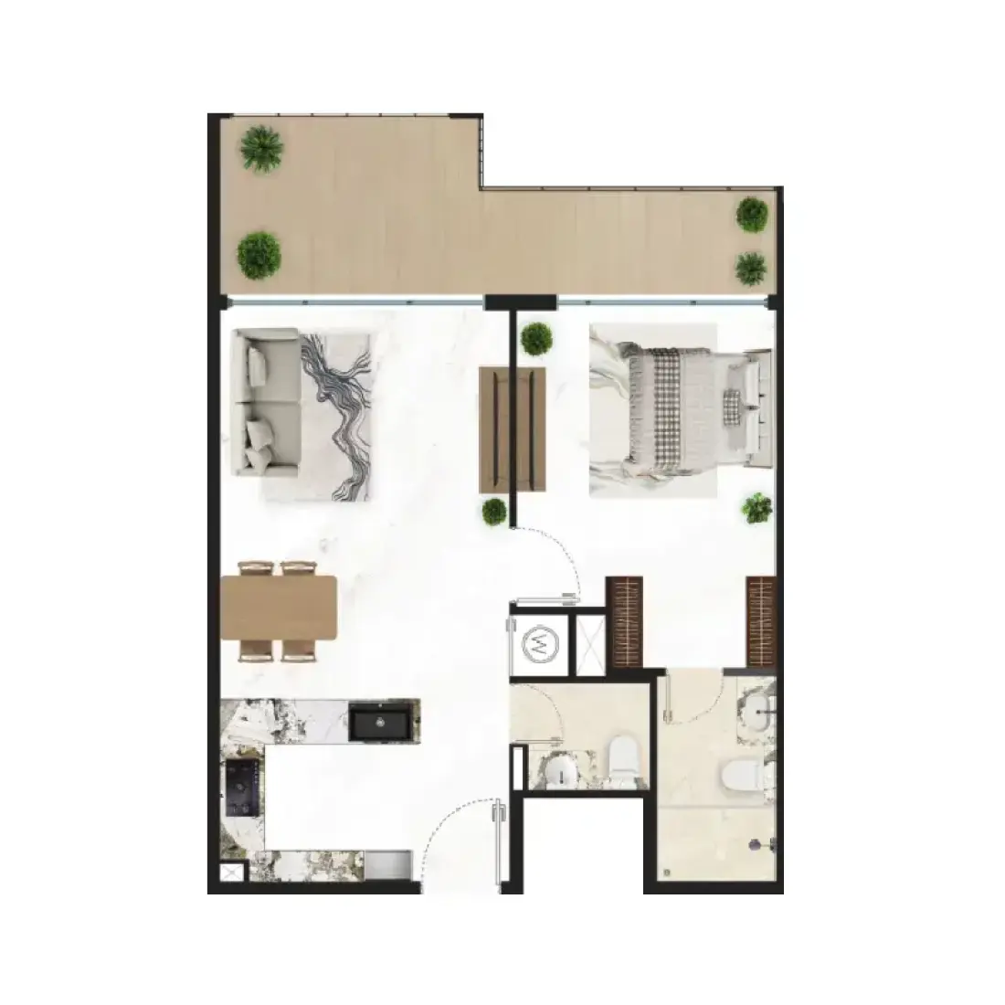 Courtyard One is envisioned as a modern oasis rising from the desert landscape, inspired by the idea of sanctuary and balance. Designed as a boutique residential address, it blends contemporary architecture with a strong sense of community, creating a refined environment where calm and connectivity coexist. The concept centers around a beautifully designed courtyard — the heart of the development — where nature, light, and open space shape a lifestyle defined by harmony and belonging.