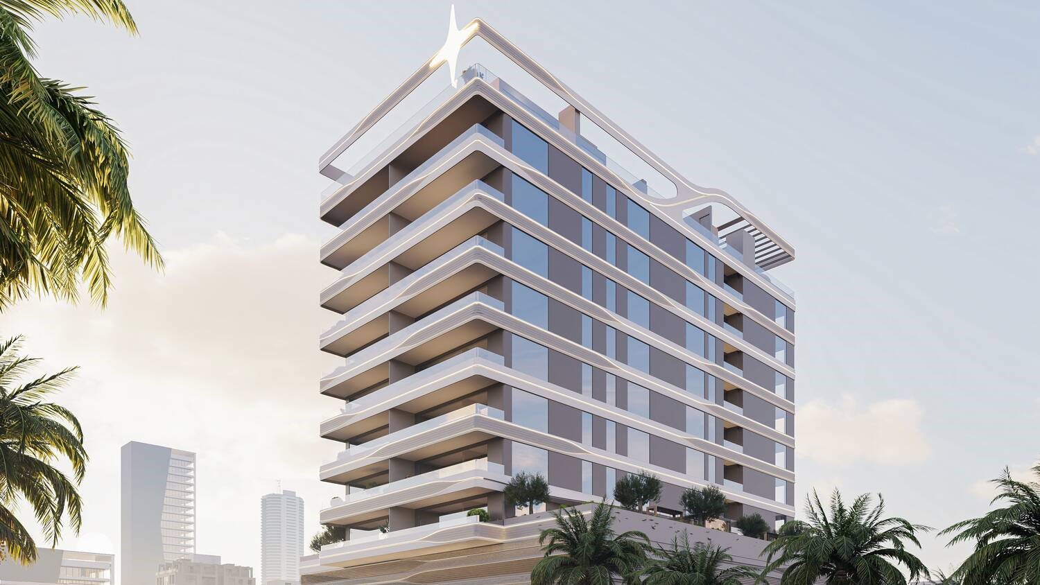 Jardin Astral is an ultra-luxury, garden-facing, designer apartment complex with 46 exclusive homes in the heart of Jumeirah Garden City, located just under fifteen minutes from Dubai’s most iconic urban centers. Finely balanced between the vibrant life of the city and a calm, green, walkable community, and appointed with the most luxurious amenities, this project is located at the best intersection of two aspects of life. The exterior and interior lines forming Jardin Astral are inspired by the northern lights, comets, and meteor showers, featuring streaks of light, stellar curves, and space-age fluidic contours that echo some of the most contemporary global architectural designs. The distinct fluidic design encapsulates multilevel parking and eight floors. Each residence is equipped with Smart Home Google Automation with a Mobile App and Biometric Door Locks, ensuring a modern, secure, and convenient living experience.