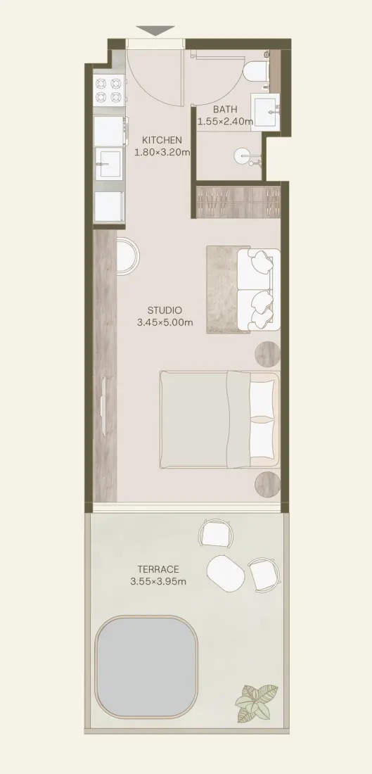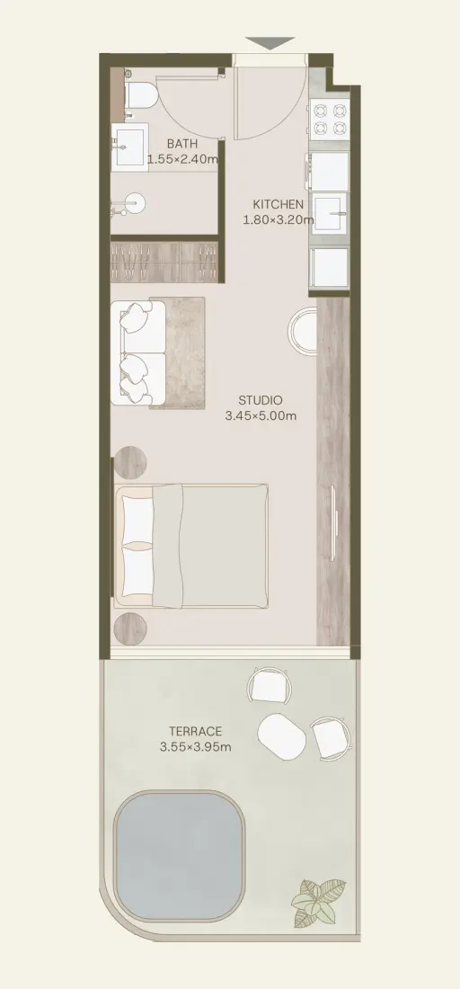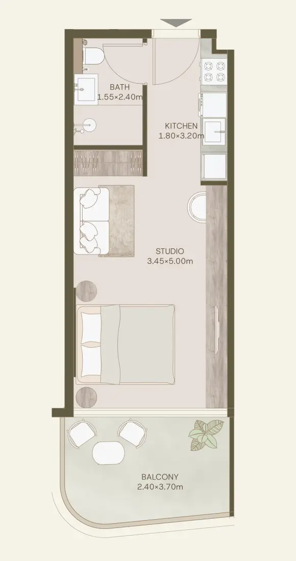 Nuvé offers a curated collection of fully furnished studios, one-bedroom, and two-bedroom residences designed for comfort, functionality, and elegance. Each home features refined interiors, open layouts, and high-quality finishes that reflect the project’s architectural harmony. Nuvé’s interiors embody the harmony of modern Italian design and timeless sophistication. Each space has been thoughtfully composed to balance elegance with ease, blending soft neutral palettes, brushed gold accents, and tactile natural finishes. Light enhances every surface, from warm wood tones to smooth stone textures, creating a home that feels refined, inviting, and effortlessly serene.