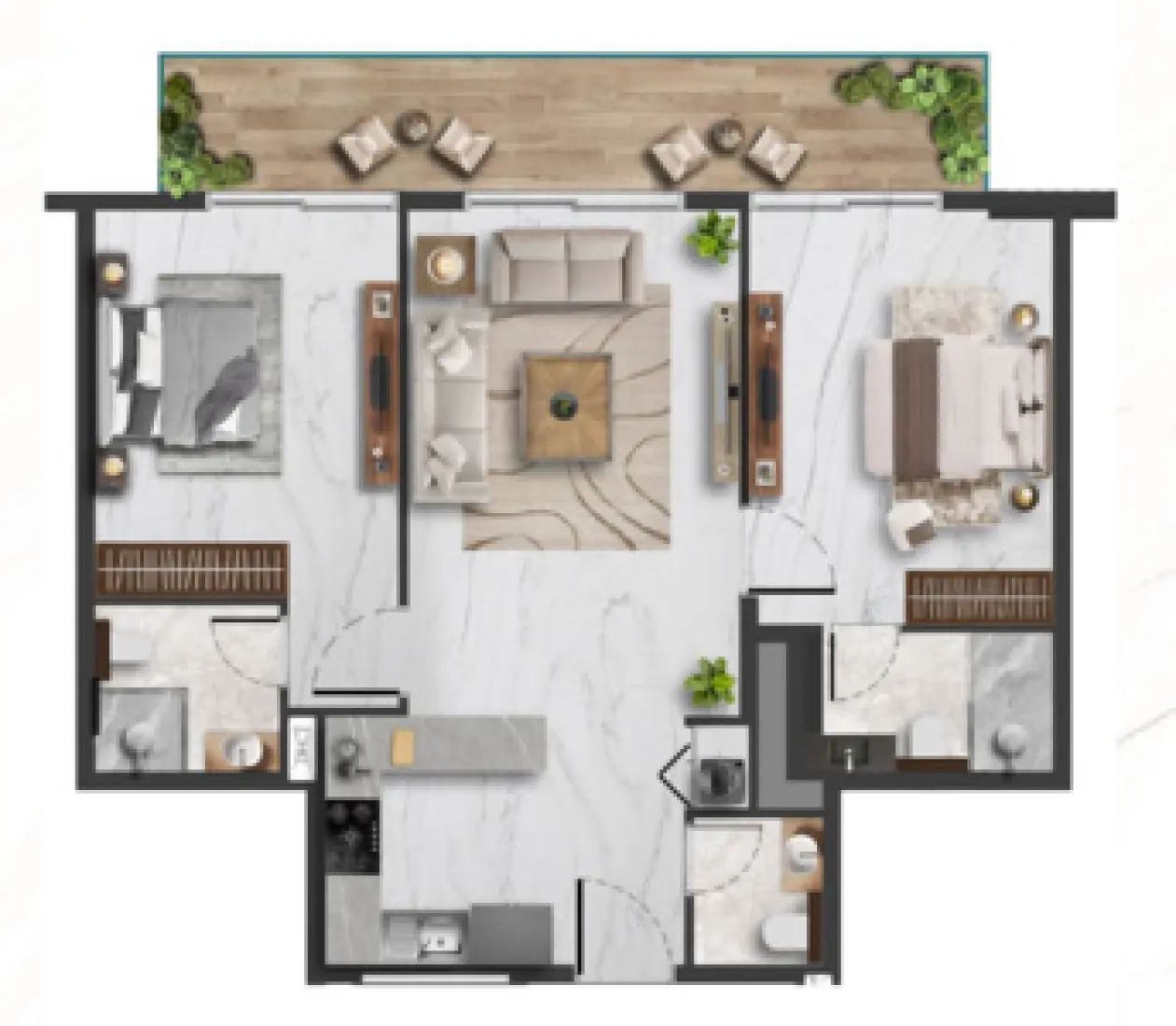The apartments in Amethyst are thoughtfully designed to blend elegance and functionality. They come in various layouts, featuring warm wooden accents, high-quality materials, and refined finishes. Residents can personalize their interiors, creating homes