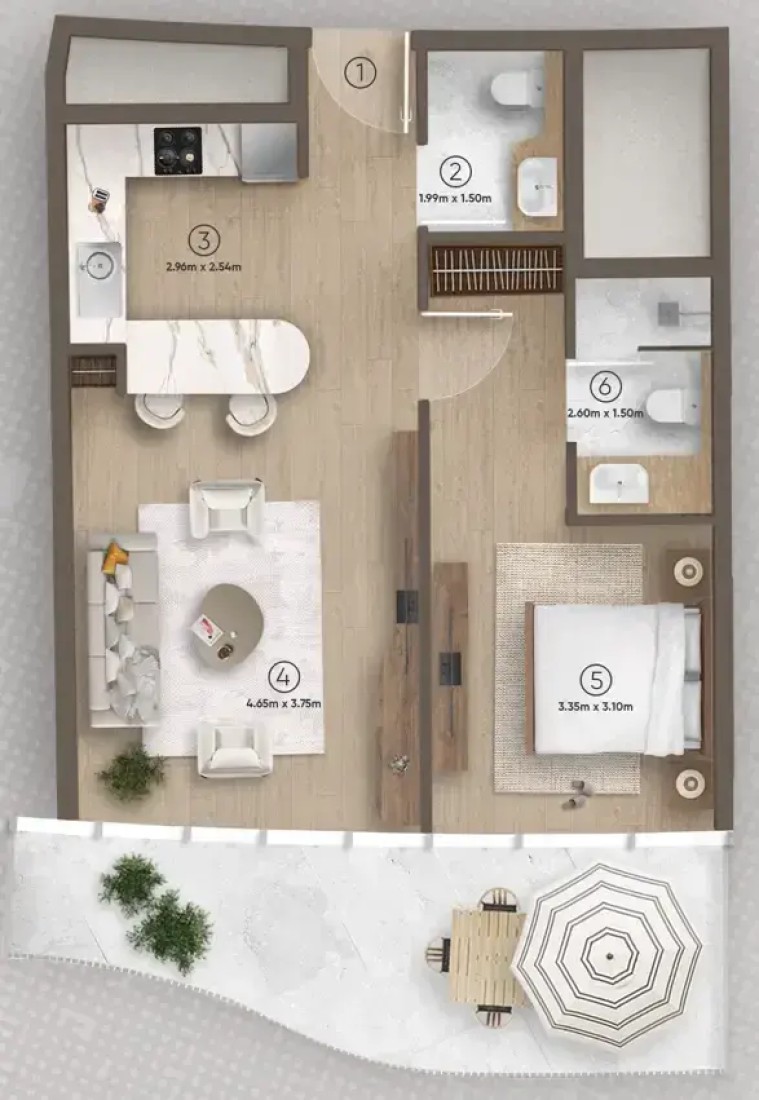 The interiors of Azure are defined by premium materials, modern finishes, and refined decorative elements that mirror the project’s calm, elevated character. The lobby showcases polished surfaces, soft lighting, and warm textures, creating an inviting sense of arrival. Residences feature contemporary design details with clean lines and elegant tones.