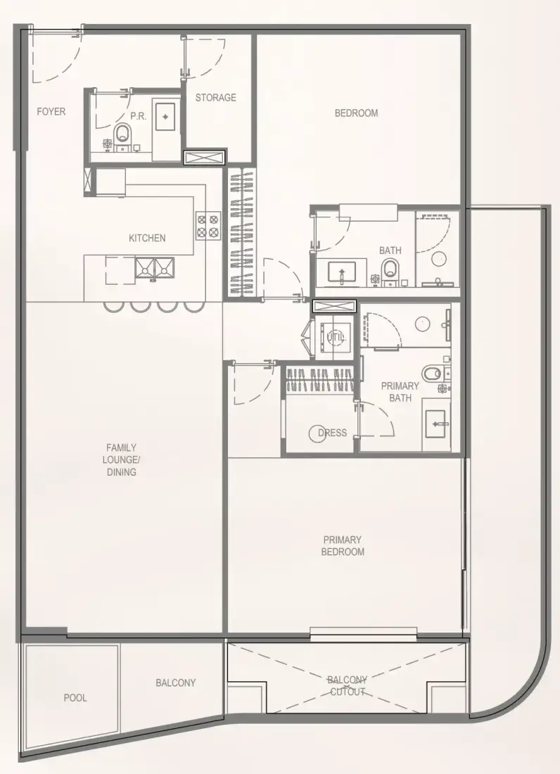 Bayview Boulevard offers exquisitely designed apartments with sophisticated interiors and high-quality finishes, reflecting a warm mid-century modern aesthetic with earthy tones and refined materials such as travertine accents. Residences range from spacious one- to three-bedroom layouts, many featuring private balconies, terraces, and select units with plunge pools, providing stunning boulevard and water views. Each home is crafted to maximize comfort, light, and functionality, setting a new benchmark for luxury beachfront living in Dubai.