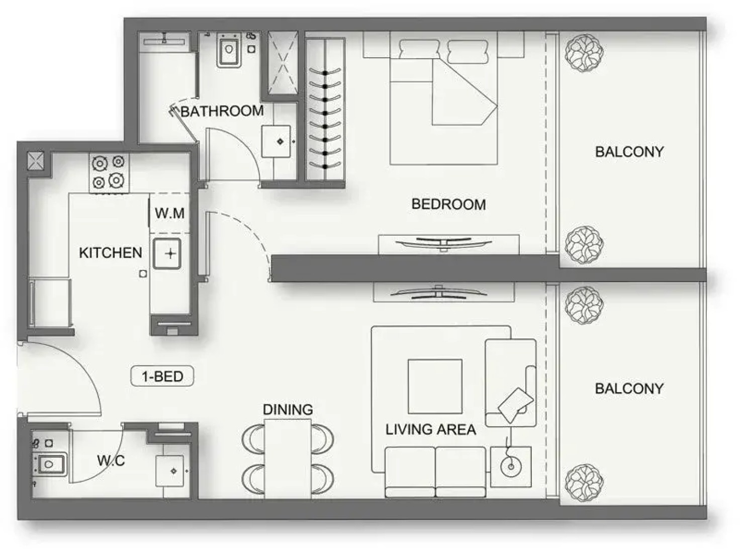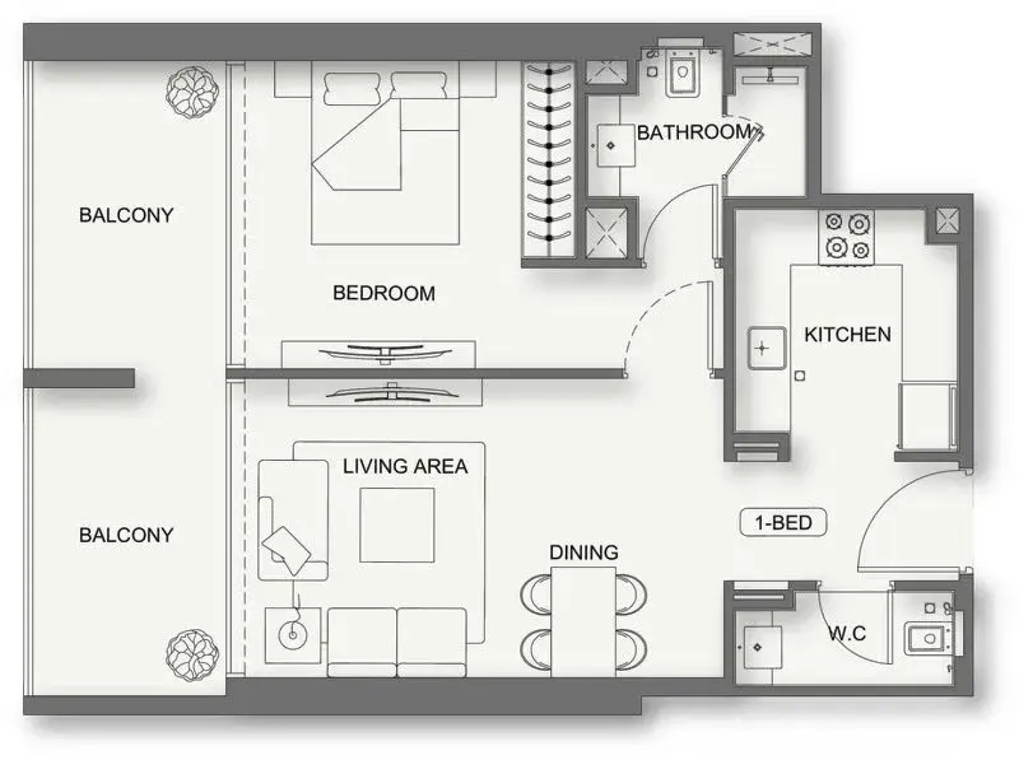 The architecture of the complex is defined by Binghatti’s signature clean lines and geometric forms, creating a modern, recognizable silhouette that blends harmoniously with the surrounding landscape. The interiors are designed in a contemporary style, utilizing high-quality materials to ensure a luxurious and comfortable living experience. Residents of Binghatti Cullinan will enjoy a wide range of amenities, including a swimming pool, a fully equipped gym, a sports court, and numerous areas for relaxation and social interaction. These features provide a balanced lifestyle that combines comfort, convenience, and wellness.