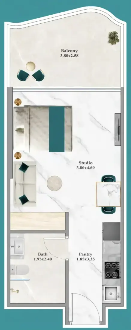 The residences are crafted with attention to detail, featuring seamless finishes, premium materials such as marble, travertine, and fluted glass, as well as refined touches like gold matte trimmings and luxury curtains. Every apartment is delivered fully furnished, offering residents a turnkey lifestyle where comfort and sophistication come together effortlessly.