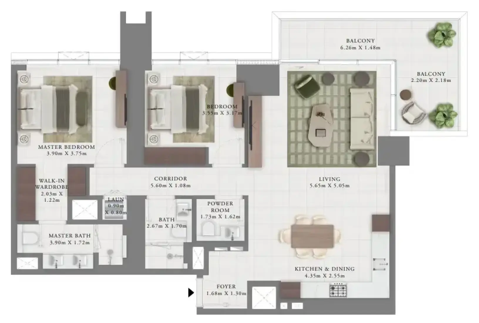 Creek Bay units are being marketed with premium, contemporary finishes: open-plan layouts with floor-to-ceiling glazing for creek and skyline views, modern fitted kitchens with stone countertops, integrated appliances, built-in wardrobes, and high-quality bathroom finishes (tiled floors, porcelain/stone surfaces, chrome fixtures). Communal areas and podiums are designed with landscaped promenades, an infinity pool, kids’ pool, gym and outdoor leisure spaces — overall a refined, move-in ready finish typical of Emaar waterfront apartment offerings.