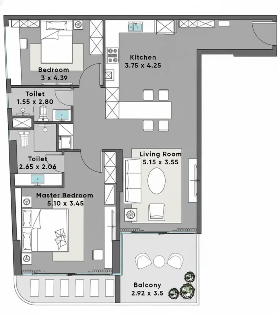 The interiors of Dreamlife Residences embody refined sophistication through clean architectural lines, soft neutral palettes, and premium finishes that create an atmosphere of understated luxury. Double-height corridors adorned with large-format marble cladding and sculptural installations transform transitional spaces into grand, experiential environments that impress from the moment of arrival. Each residence features sleek, handle-less kitchens with integrated appliances, thoughtfully layered lighting, and custom-built storage solutions that maximize both functionality and aesthetic appeal. Expansive floor-to-ceiling windows flood the living spaces with natural light while framing breathtaking panoramic views of the Arabian Gulf, seamlessly connecting indoor comfort with the beauty of the waterfront setting.