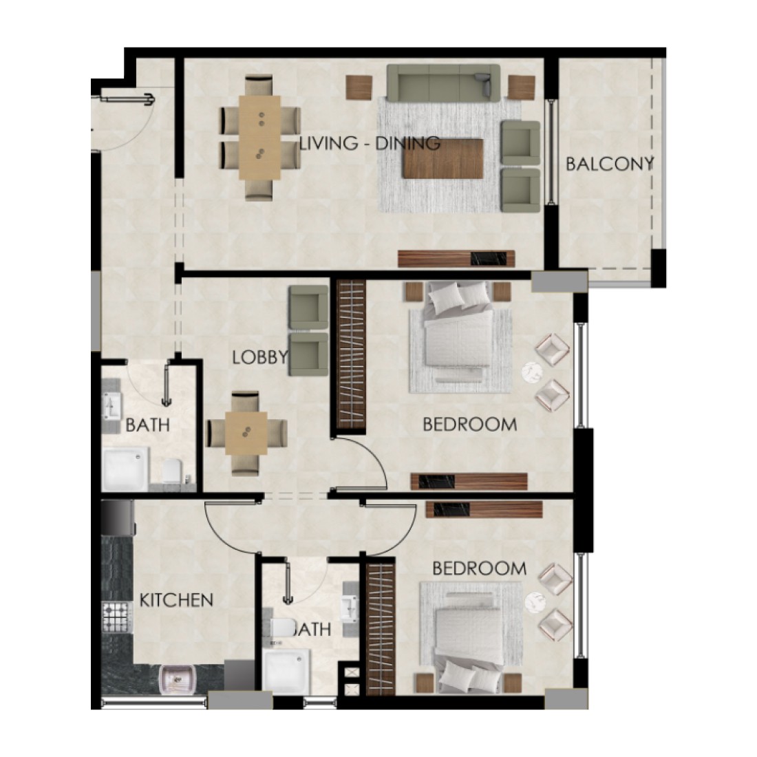 The interiors of Dugasta Warsan 4 are designed with a modern aesthetic that emphasizes comfort and functionality. Each apartment features high-quality finishes and thoughtful layouts that maximize space and natural light. Here are some highlights of the interior design: