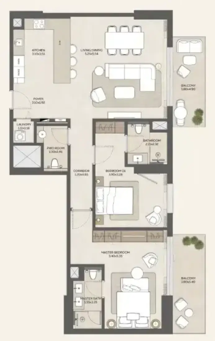 The community is enriched with a wide range of lifestyle and wellness amenities across the ground floor and podium levels. Residents can enjoy multiple swimming pools - including lap pools, infinity edges, and kids’ pools - along with main and satellite gyms, yoga areas, indoor kids’ clubs, prayer rooms, an indoor games room, multipurpose halls, BBQ areas, outdoor dining spaces, a community plaza, and landscaped event lawns. These spaces bring together wellness, recreation, social interaction, and relaxation in a harmonious, resort-like environment.