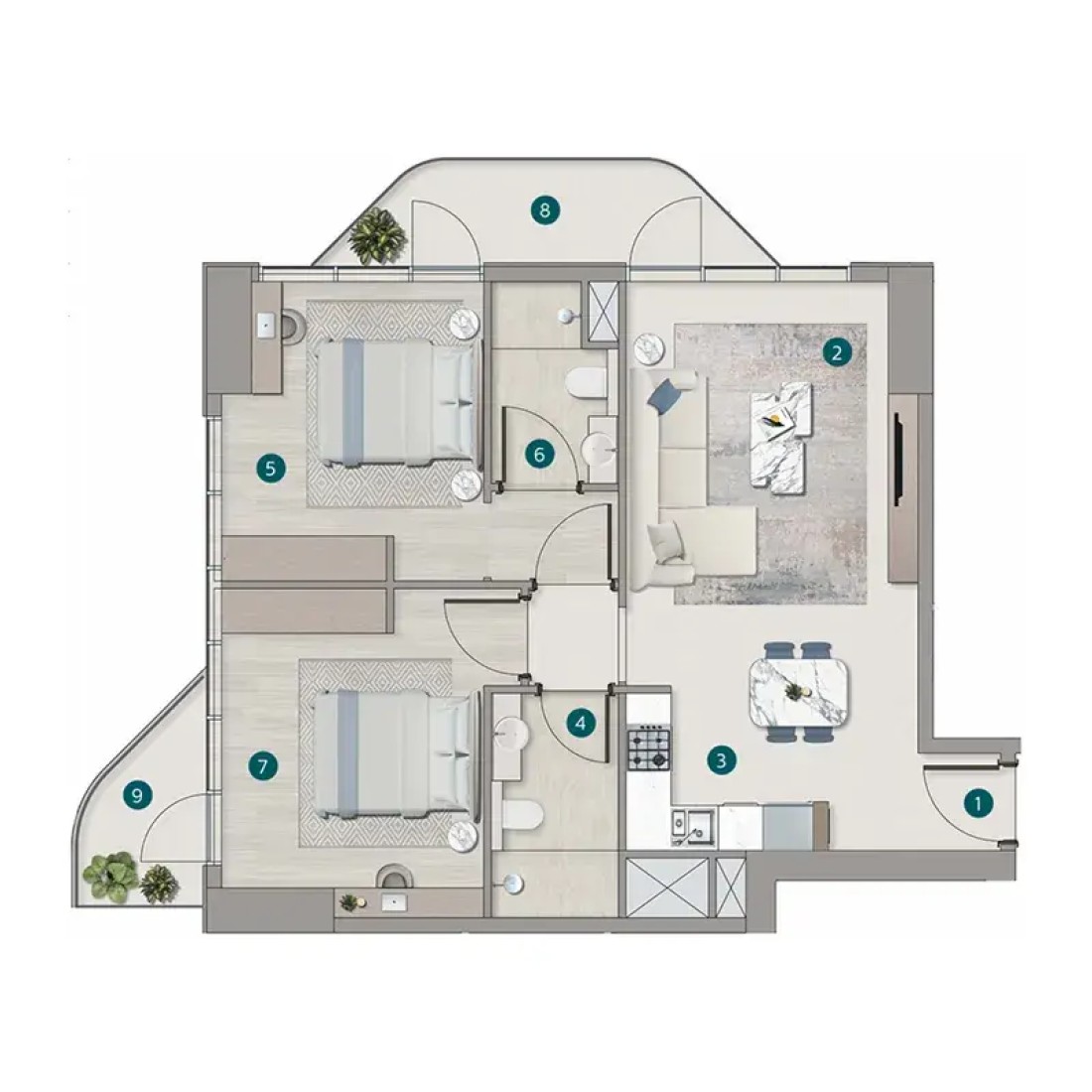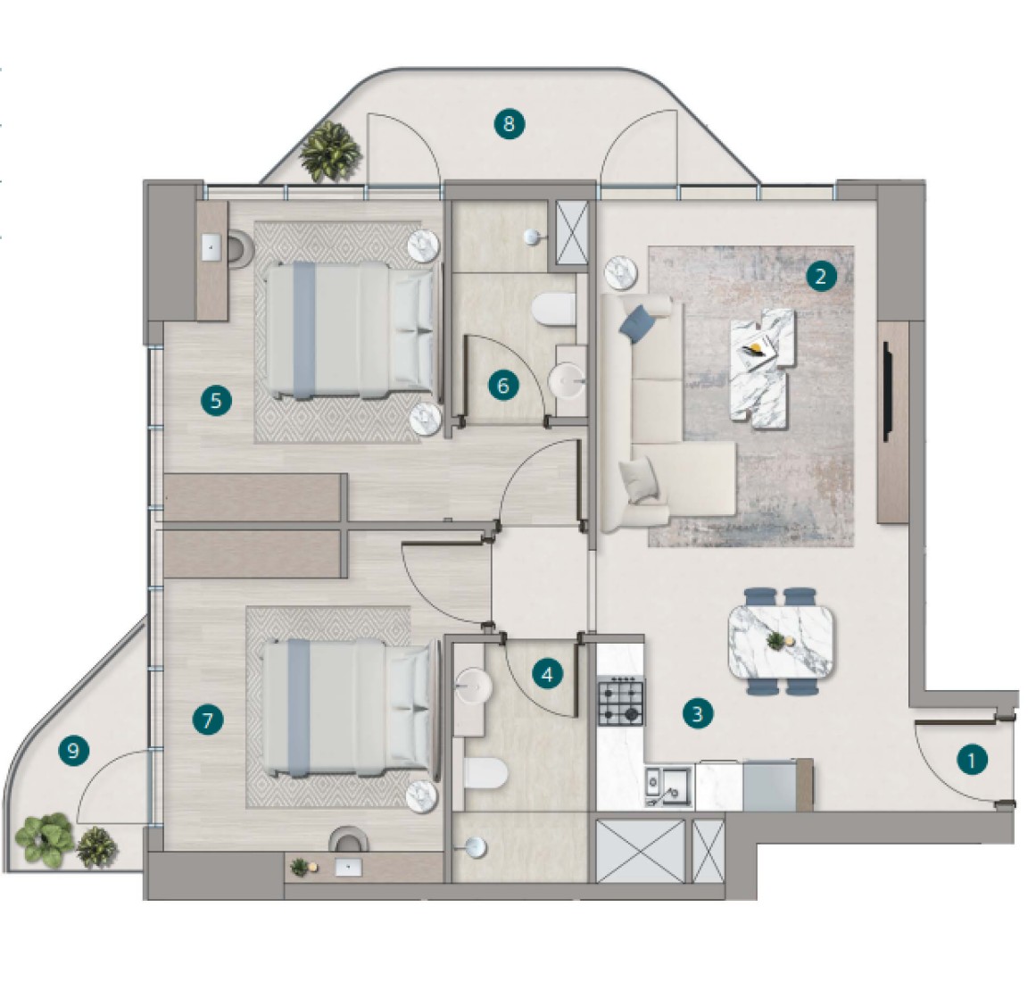 Inside, the residences are thoughtfully designed to elevate daily life through refined aesthetics and effortless functionality. Every element — from the open-plan living spaces to the soft tones and natural textures — evokes the beauty of the coastline. Large windows flood the interiors with light and frame the stunning sea views, while premium materials and elegant finishes ensure timeless comfort and understated luxury.