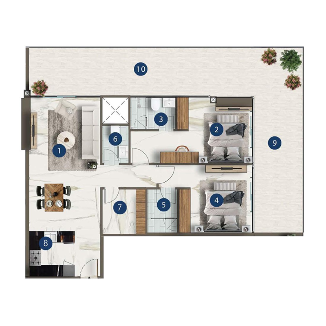 The project’s amenities bring resort-style comfort to daily life. Residents can enjoy a seamless blend of leisure and wellness with indoor and outdoor gyms, male and female spas, a Zen garden, and a sparkling swimming pool. A business lounge, children’s play areas, an outdoor cinema, and a padel court complete this exclusive lifestyle, offering the ultimate harmony between relaxation, recreation, and sophistication.