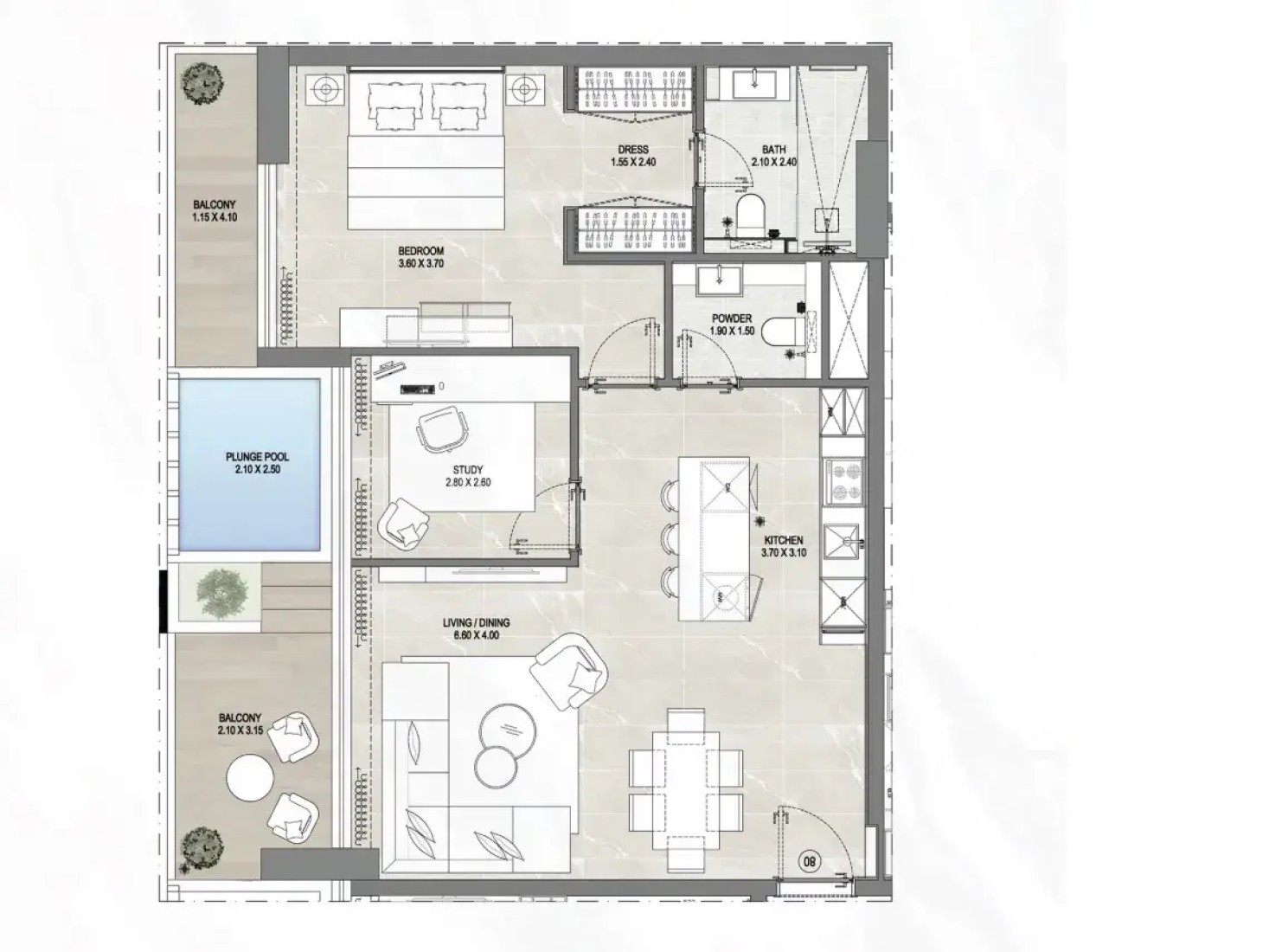Gharbi 1 offers a collection of 168 residences ranging from studios to one and two-bedroom apartments. Striking a balance between modern design and functionality, these homes cater to diverse lifestyles. The interior boasts open floor plans, high-quality fixtures, natural light, fine furnishings, a fully fitted kitchen with european-made appliances, smart home technology, and european-made sanitary items.