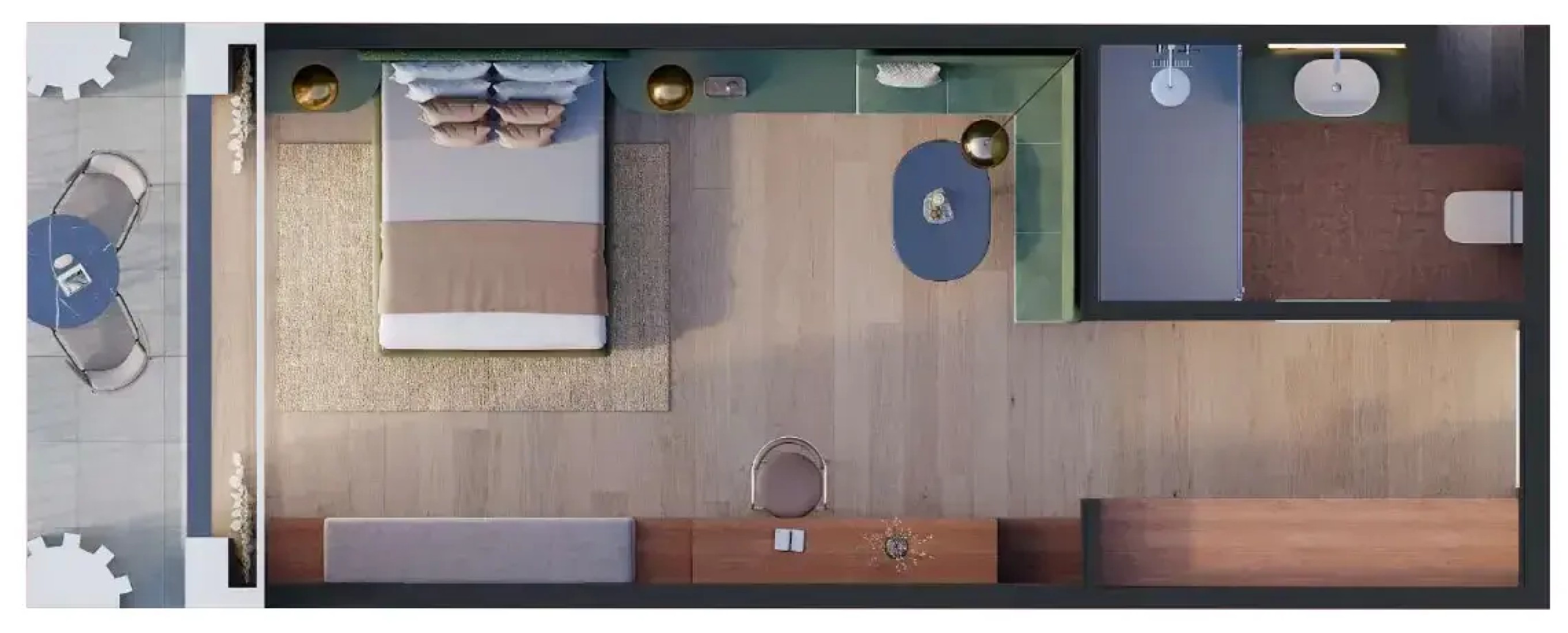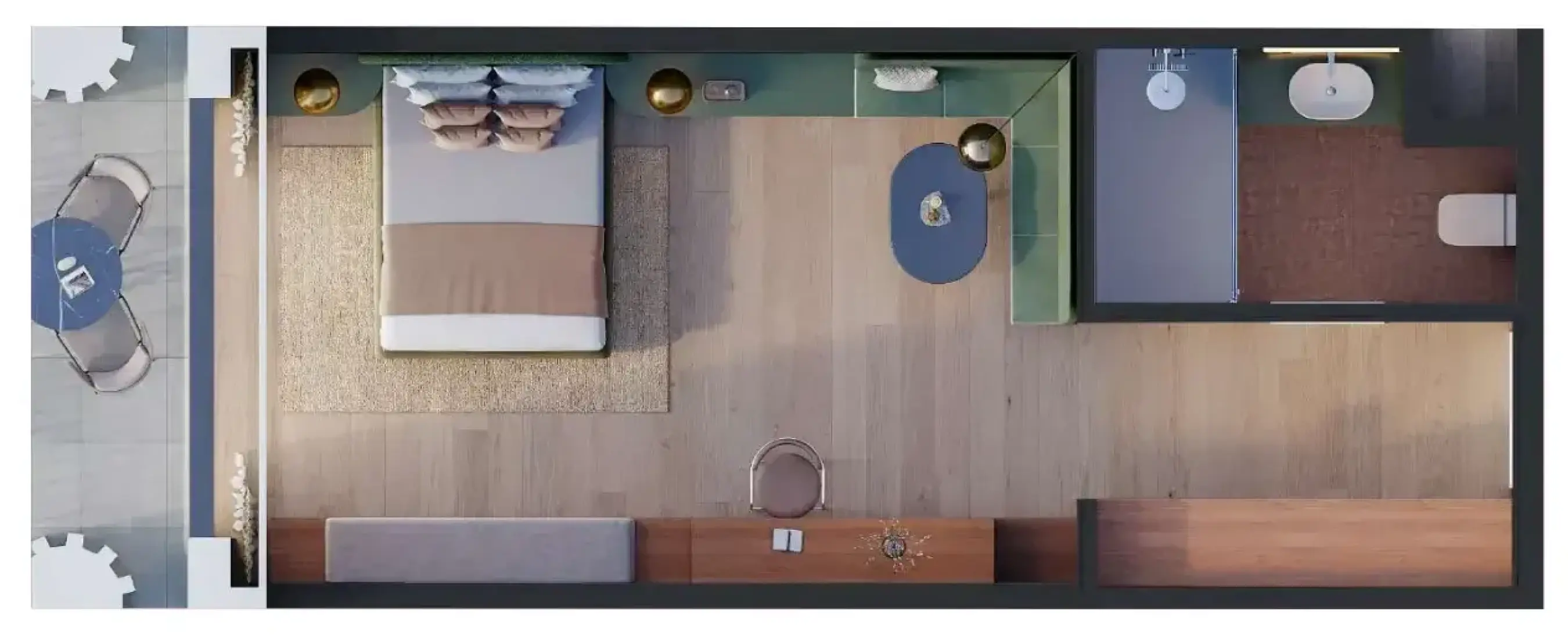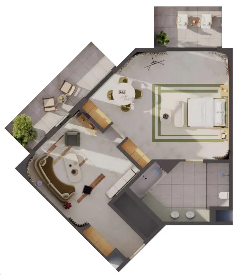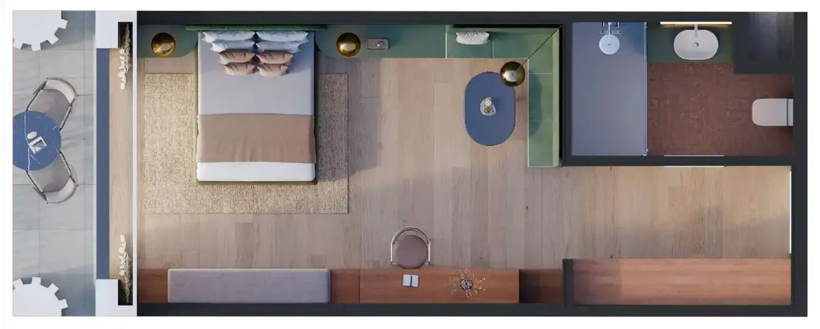 Calm, elegant interiors with soft natural textures. The materials are inspired by the Nordic traditions of relaxation and renewal, carefully selected to create a peaceful and cozy atmosphere.