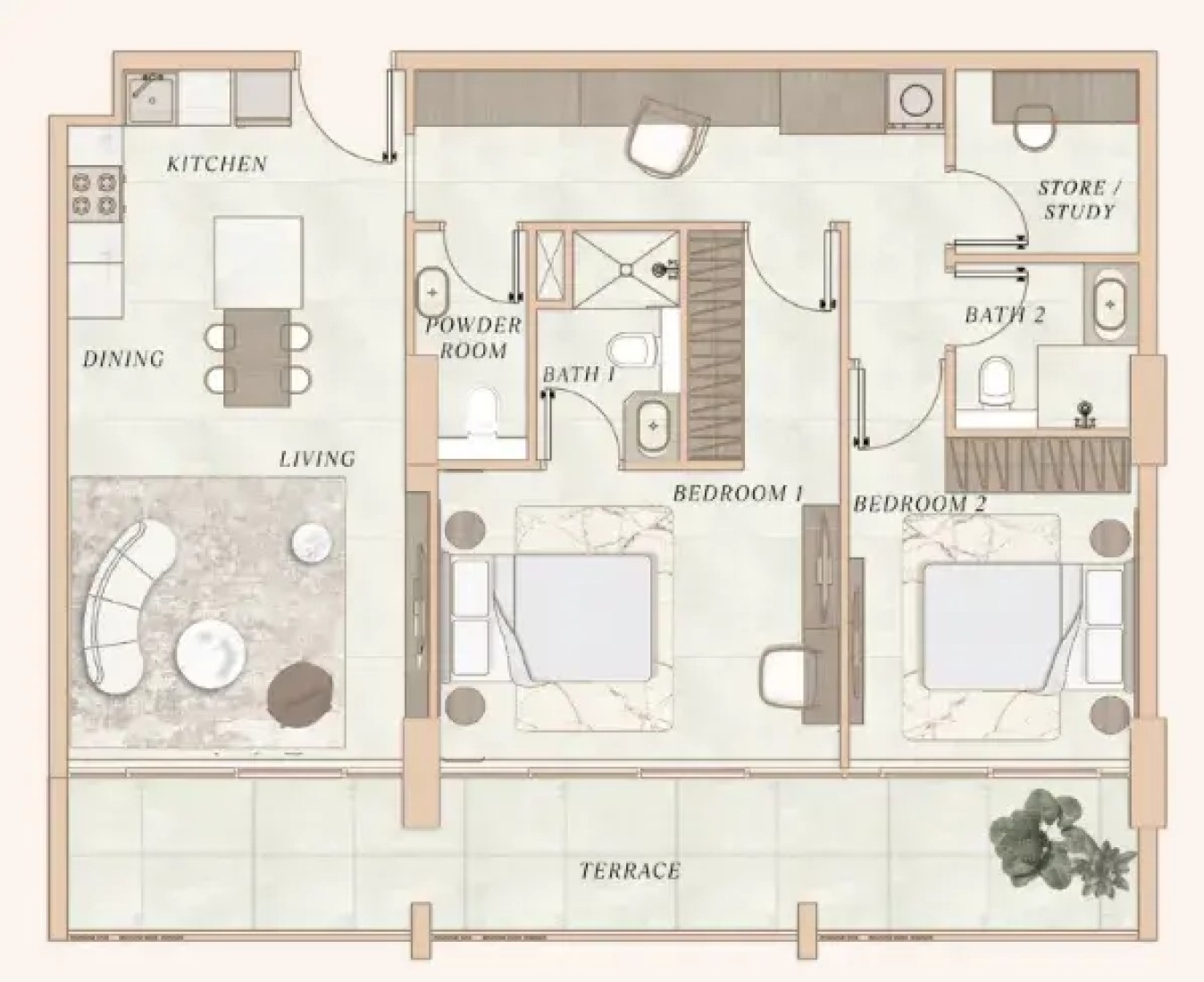 The residences at La Cle are crafted with comfort and functionality in mind. Each unit features smart layouts, a warm modern palette, fully fitted kitchens with branded appliances, and built-in storage. The project offers a range of unit types, including one-bedroom apartments, two-bedroom homes with additional maid’s or study rooms, and spacious three-bedroom units with private pools—ensuring there is something for everyone, from singles to growing families.