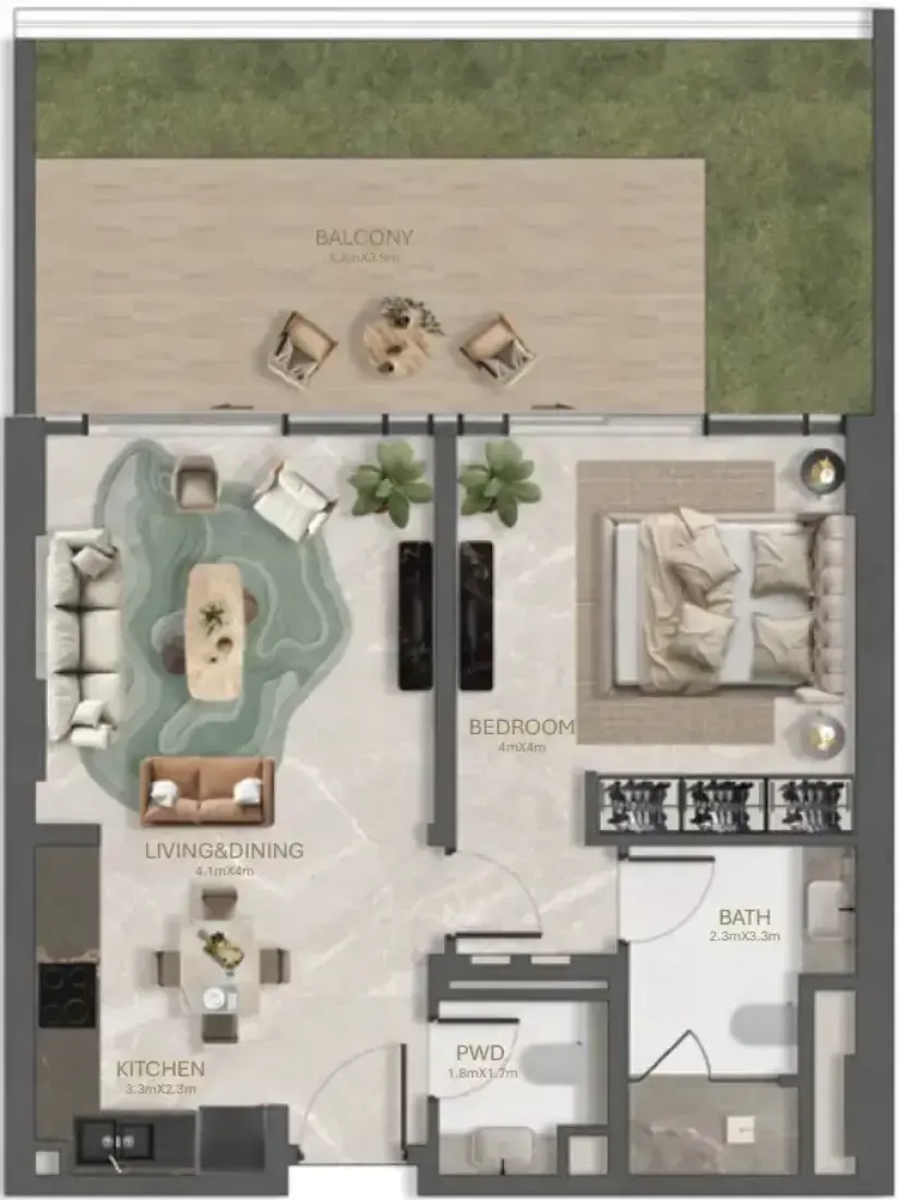La Perla's architectural form draws from the quiet elegance of a pearl, rare, luminous, and intimately scaled. With just 57 residences across a 2B+G+6F+R structure, each home is designed for spacious living, privacy, and panoramic connection to nature. From loft-inspired duplexes and penthouses with garden courtyards to flowing balconies and high ceilings, the architecture frames a life that feels expansive, personal, and purposefully placed by the sea.