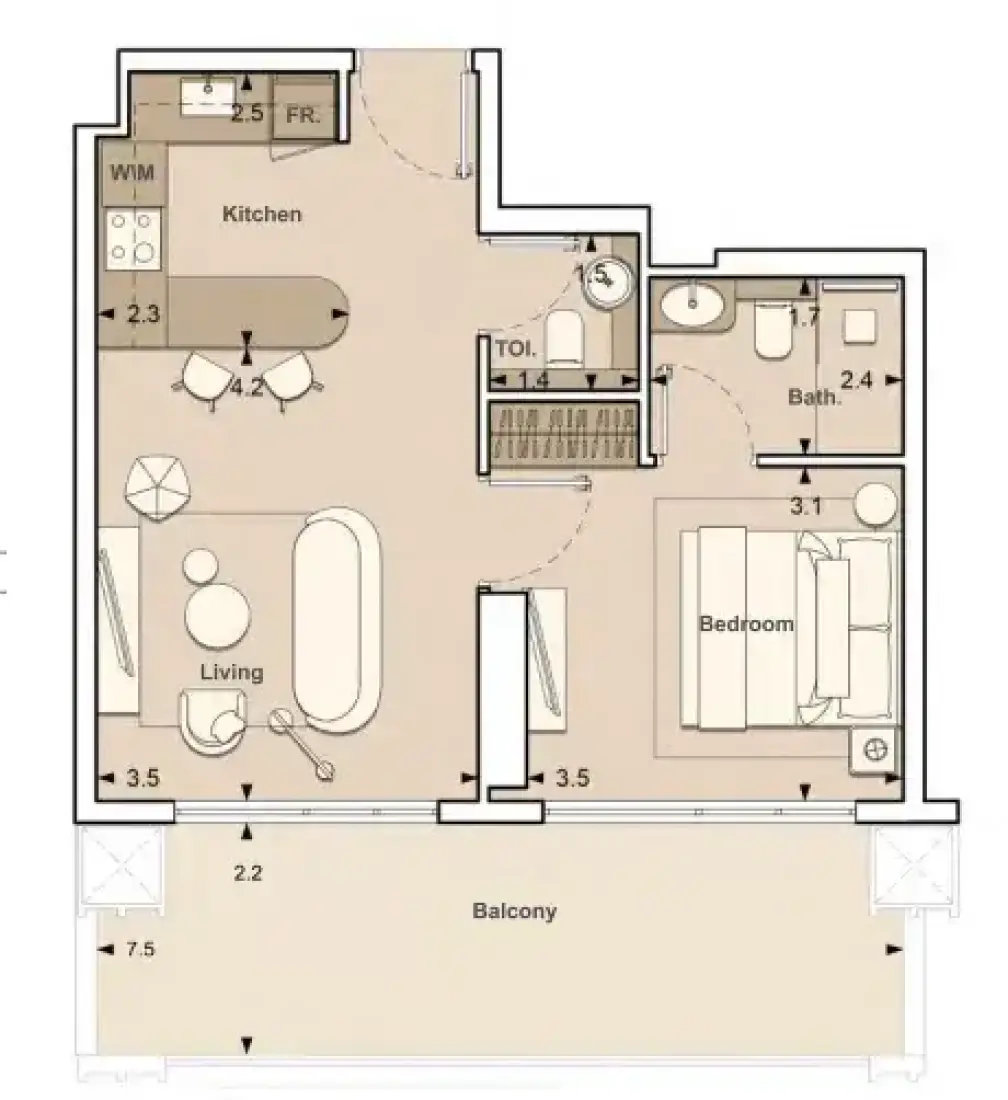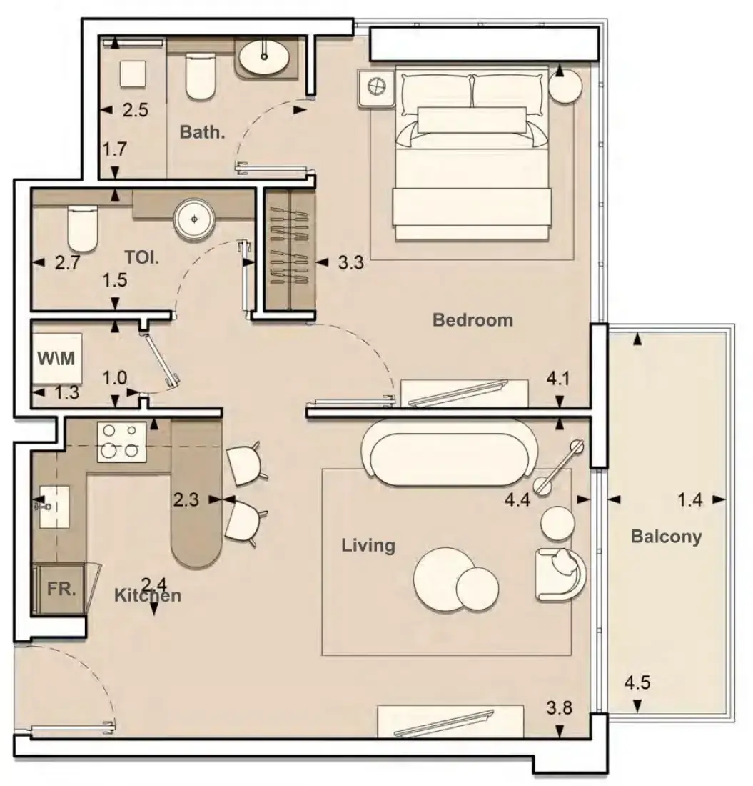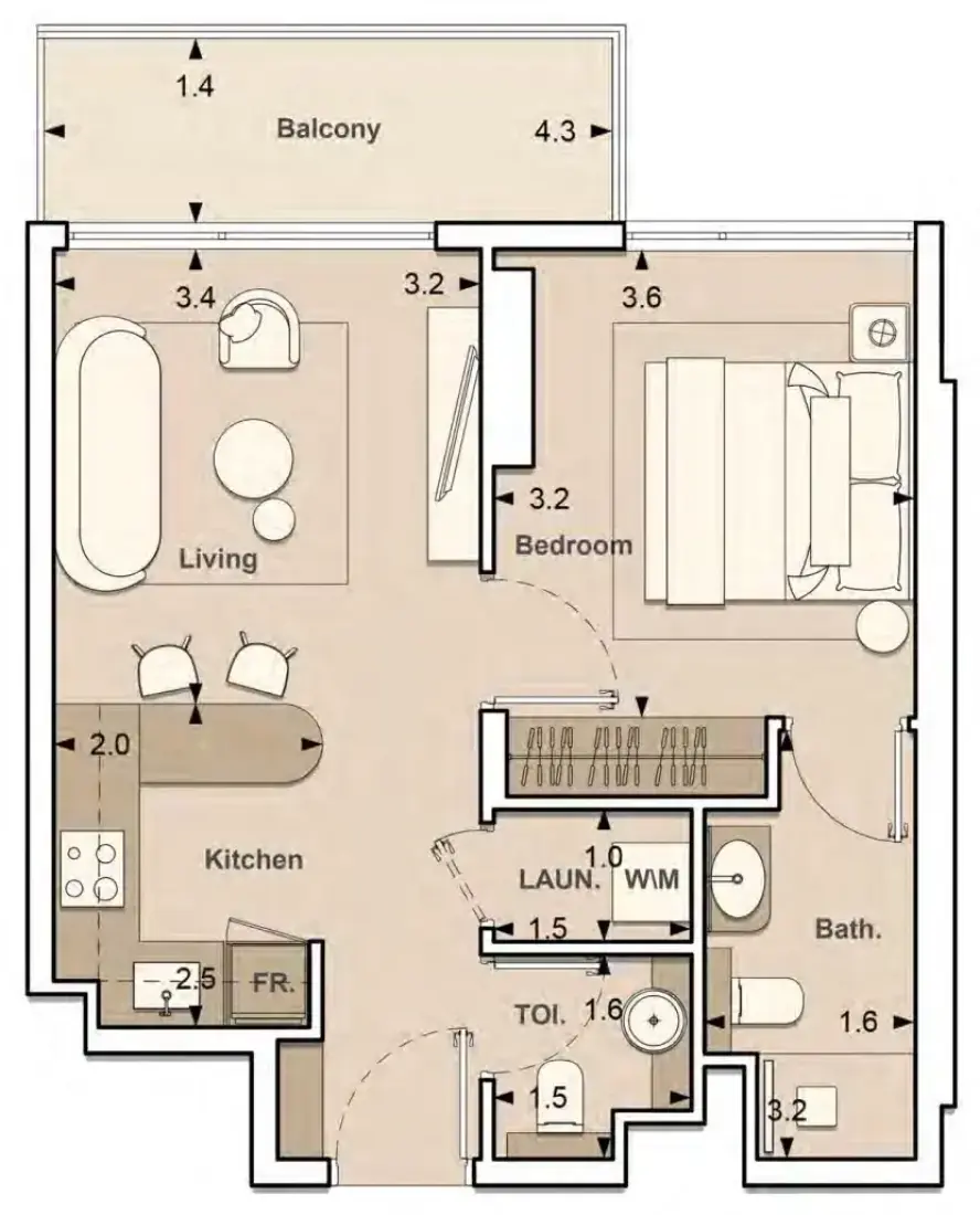 The interplay of natural light, premium finishes, and modern fixtures defines LUME. Off- white shades bring a serene and minimalist ambiance, while brushed gold finishes and reflective wall accents add a touch of elegance and depth. Each apartment feature