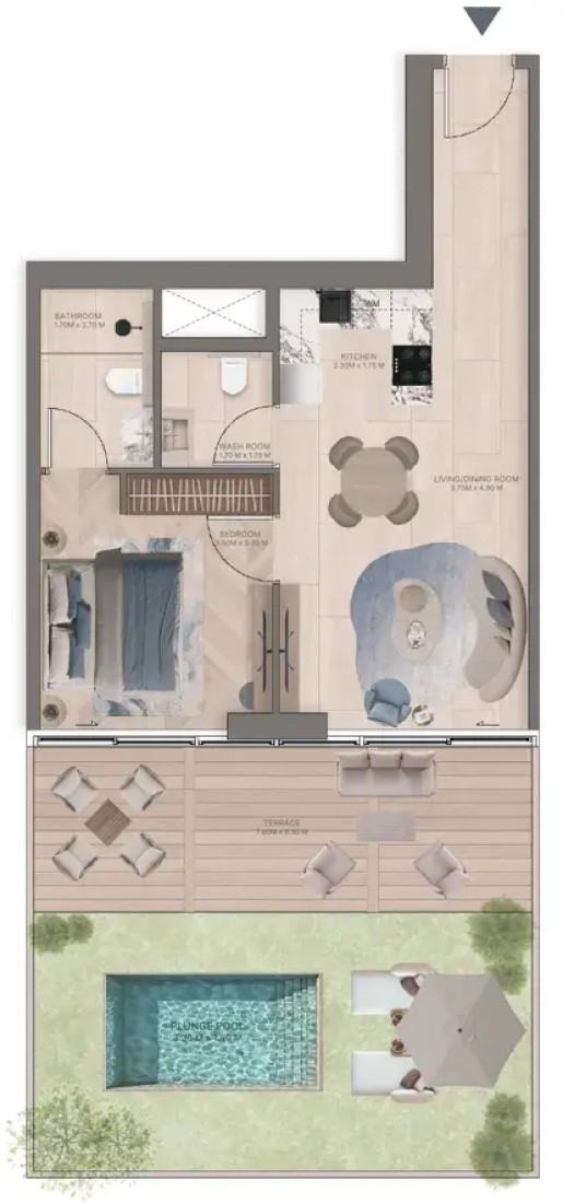 Residents benefit from a wide range of lifestyle amenities spread across three levels. Level One offers adult and children’s pools, indoor and outdoor gyms, a yoga and meditation terrace, steam and sauna rooms, cabanas, sunbeds, and a children’s play zone. Podium Two adds cabanas, seating pods, mini golf, billiards, table tennis, and a children’s activity zone. The rooftop elevates the experience with an infinity pool, jacuzzi deck, BBQ and alfresco lounges, outdoor seating, and panoramic views that celebrate island living.