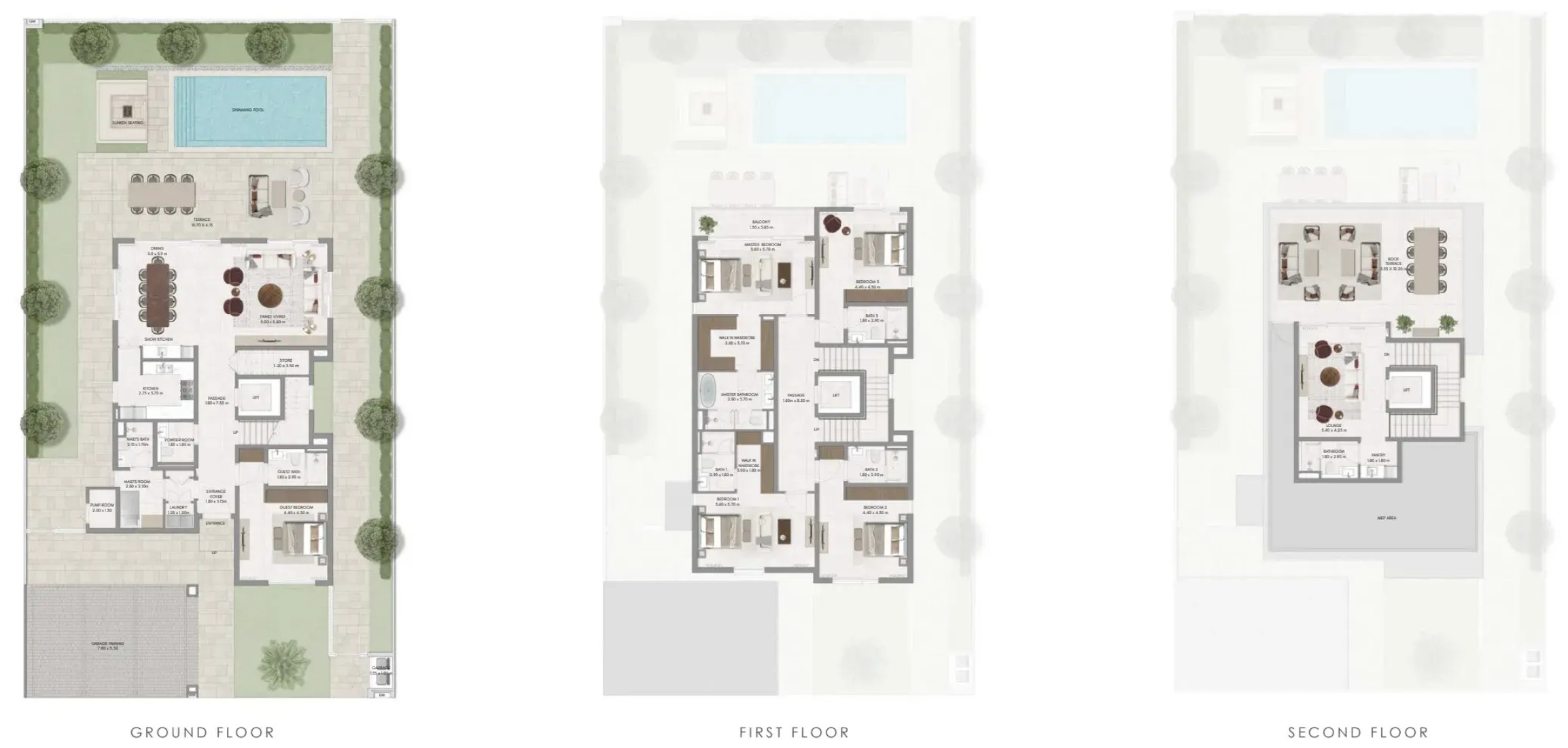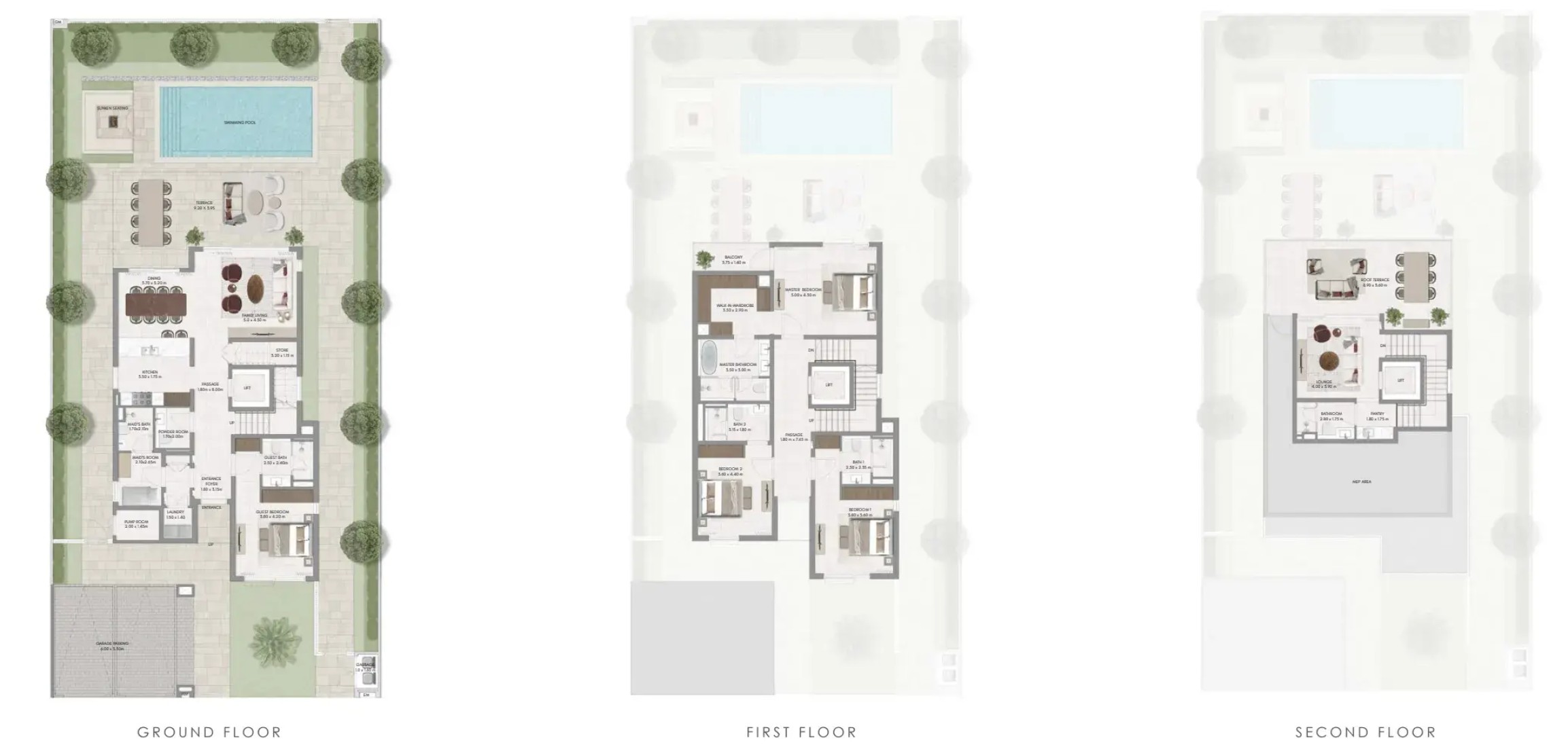 Ovelle at The Valley presents a refined architectural vision shaped by the serene landscapes of Emirati wadis, mountains, and expansive green meadows. Its villa façades embrace earthy tones, natural materials, and elegant modern lines, creating a harmonious dialogue with the surrounding nature. The community’s masterplan prioritizes slow living, peaceful movement, and organic integration with the land, resulting in a tranquil, nature-inspired environment where open spaces, flowing water, and golden light define the daily atmosphere.