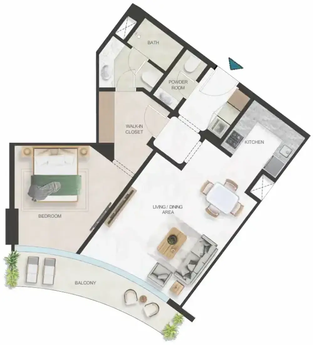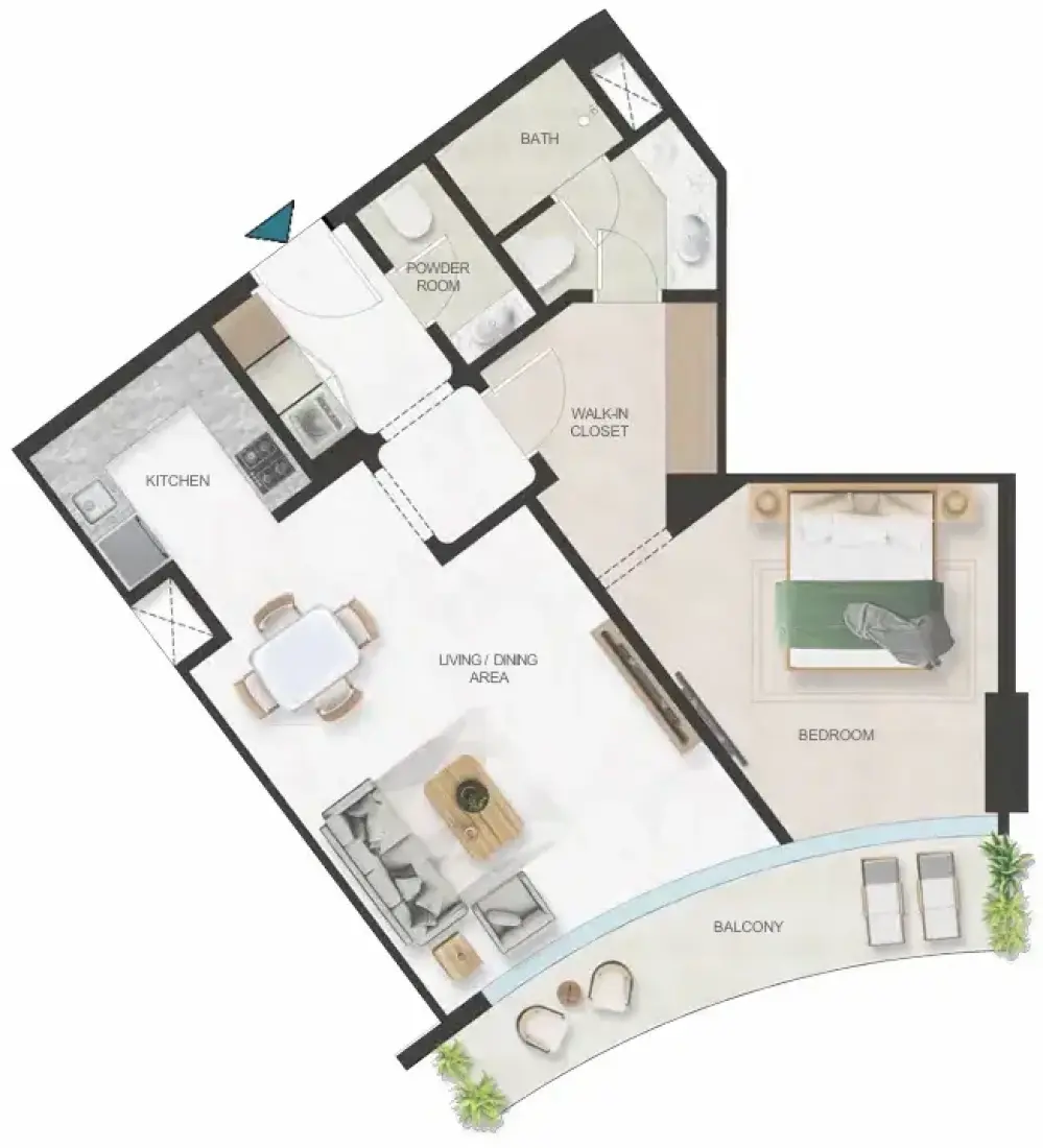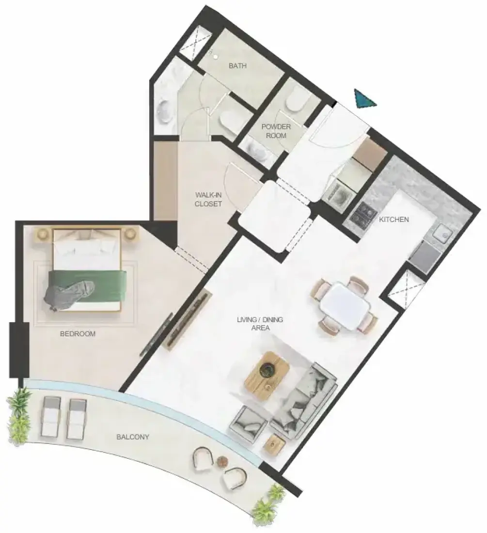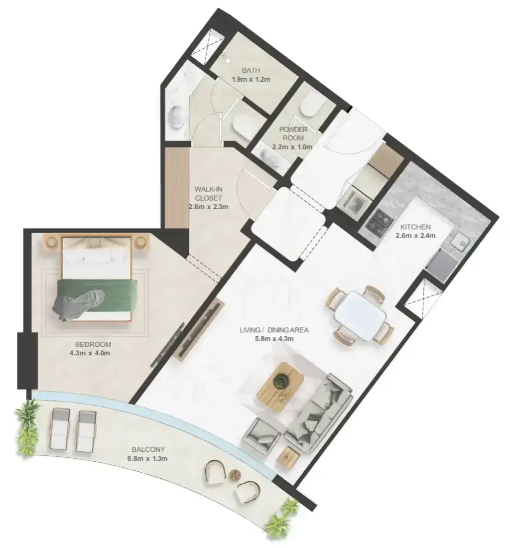 Oystra's interiors are crafted to reflect the project's overarching concept of fluidity and organic form. The design language seamlessly blends luxury and natural elements, creating spaces that feel both refined and welcoming. The aesthetic is modern, with a focus on curvature, softness, and understated elegance.