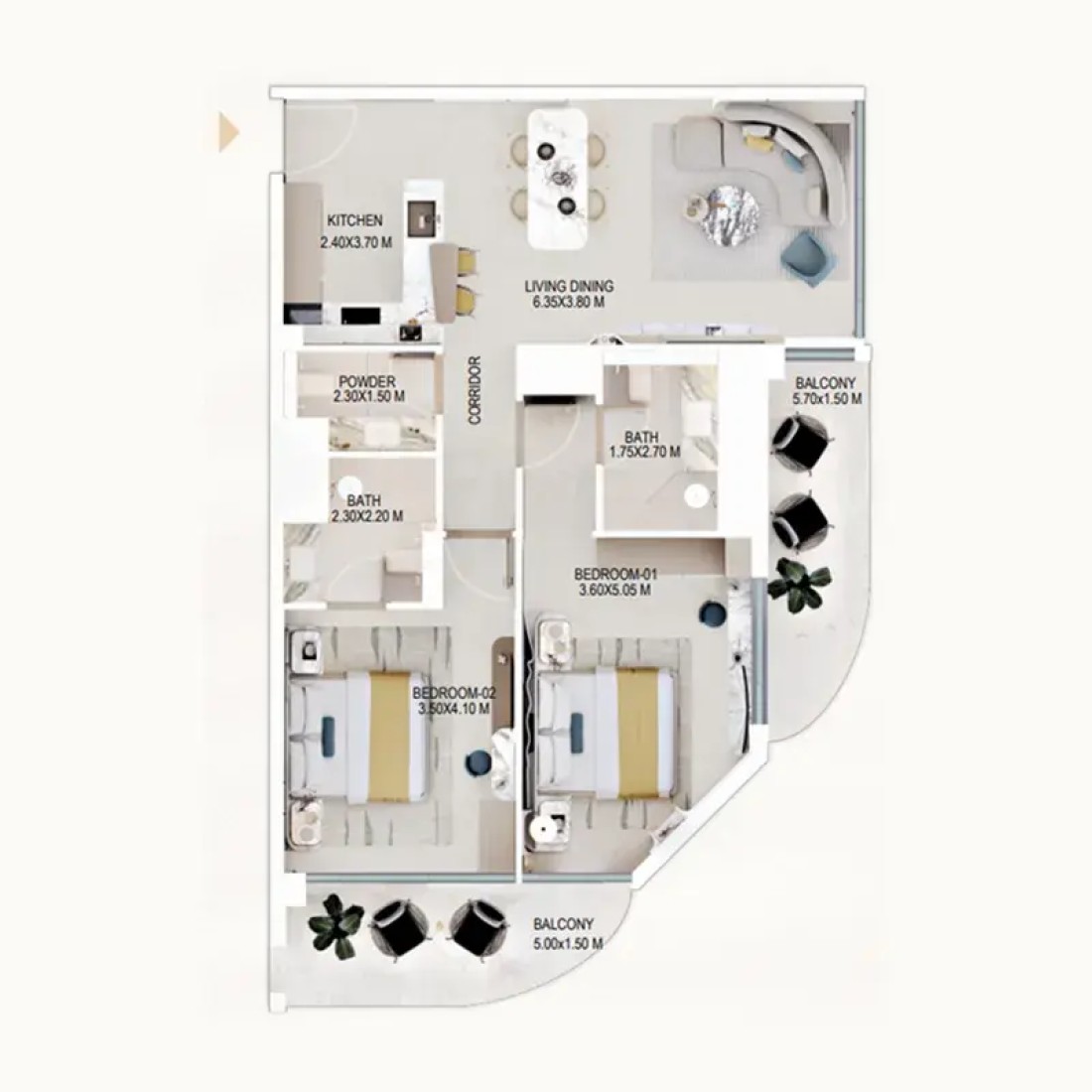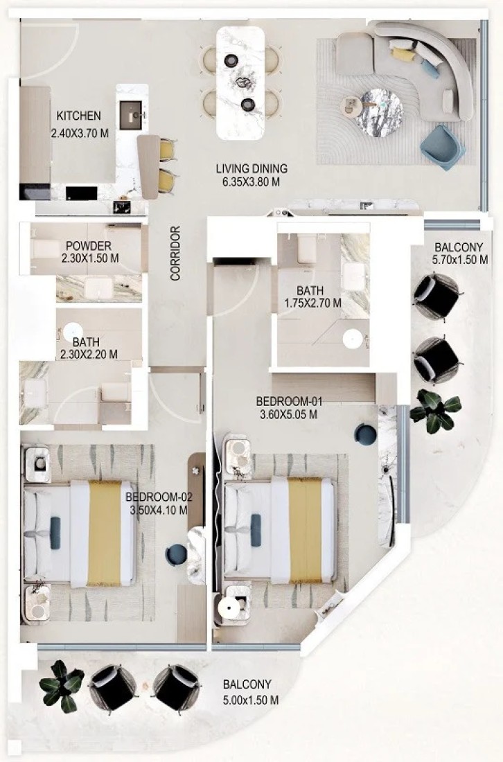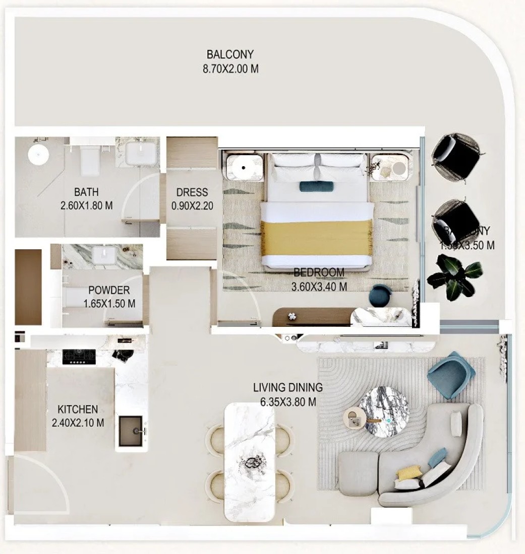 Inside the homes, materials and finishes are selected with exceptional attention to detail, using natural palettes and elegant textures to create a soothing atmosphere. Residents can choose from three furnishing options: semi-furnished with kitchen appliances, semi-furnished with cladding, or fully furnished apartments. The kitchens, fixtures, and overall interiors reflect premium craftsmanship, ensuring each home feels refined and comfortable.