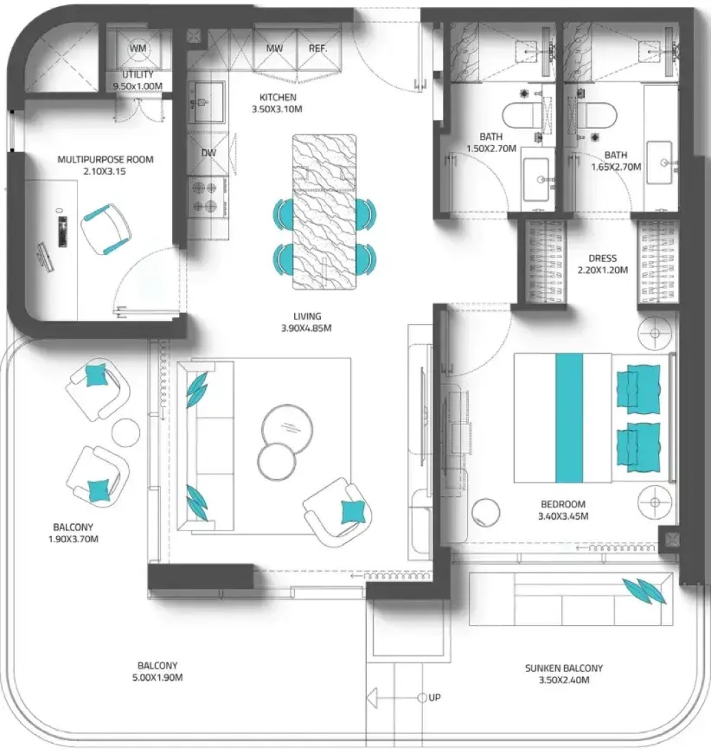 Inside, Reef 997 reflects the highest level of sophistication and comfort, blending international design with luxurious practicality. The lobby and corridors are thoughtfully designed to create a sense of elegance and welcome from the very first step inside. Reef 997 is more than just a residence—it is a statement of refined living, offering a serene island retreat with the vibrant heartbeat of Dubai close at hand.