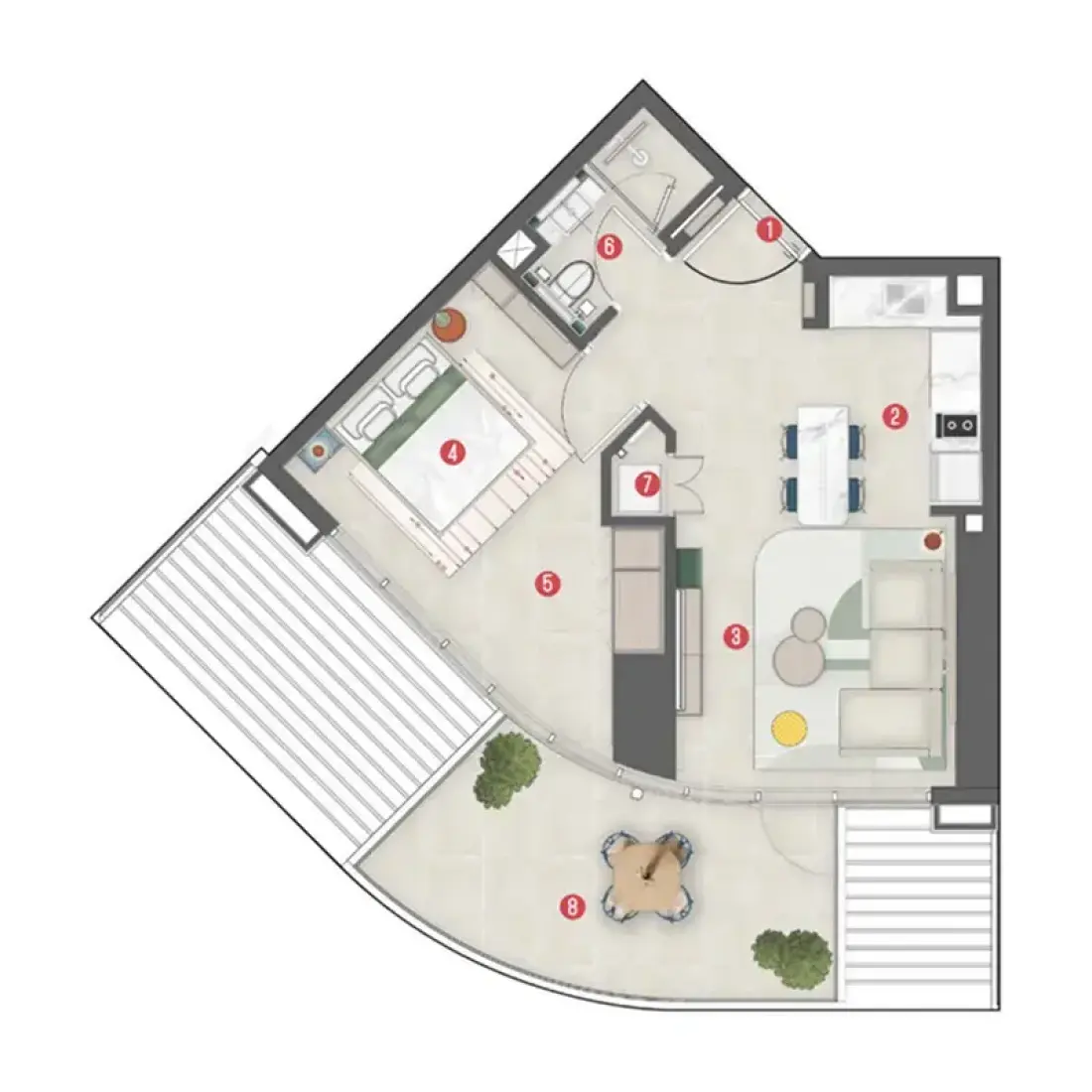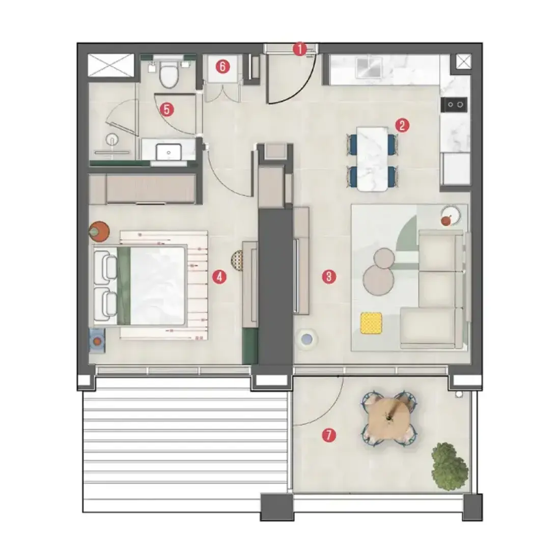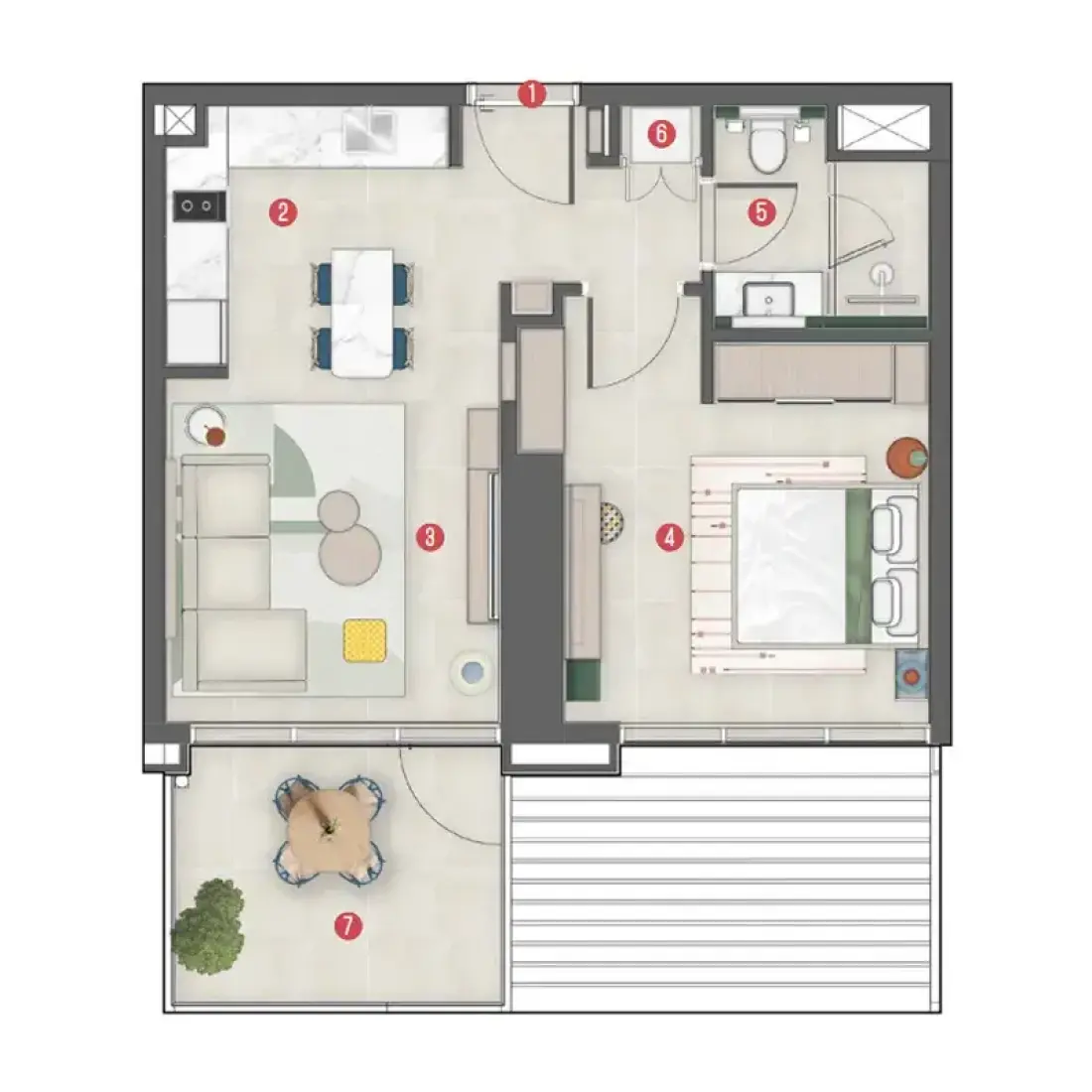 Inside the community, Rove Home emphasizes social living and active lifestyles. Carefully designed leisure decks, landscaped outdoor zones, and elevated podium experiences create a dynamic environment for relaxation, wellness, and recreation. Whether enjoying the swimming pools, jogging along rooftop tracks, practicing outdoor yoga, or meeting friends in the residents’ lounge, residents experience a seamless blend of work, play, and wellbeing. A wide range of amenities further enriches the lifestyle offering, including co-working and meeting rooms, working pods, entertainment areas, putting greens, an outdoor cinema, steam room, jacuzzi, gyms, cabanas, multi-functional rooms, concierge service, reception, Rove Café, and free Wi-Fi in public spaces. This comprehensive amenity mix reinforces the project’s identity as a vibrant, socially connected urban hub designed for modern city dwellers.