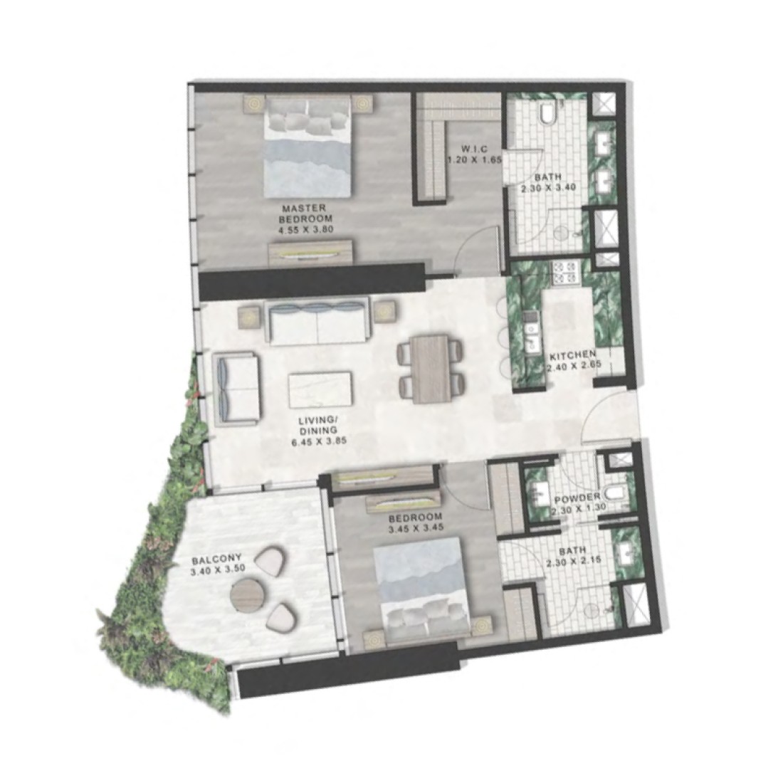 Whether it’s the refinement of a 1 bedroom home in Tower B or an ultra-luxurious 2 or 3 bedroom suite with personal splash pool in Tower A, Safa One sets a new standard in sophistication that glitters as brightly as a 24 carat gem. The stunning outdoor design has been crafted carefully to showcase a mix of elegance, modernity and sophistication. Matching that excellence and perfection are the apartment interiors. For instance, the triple-height lobby has an affluence of gemstones (emeralds and diamonds).