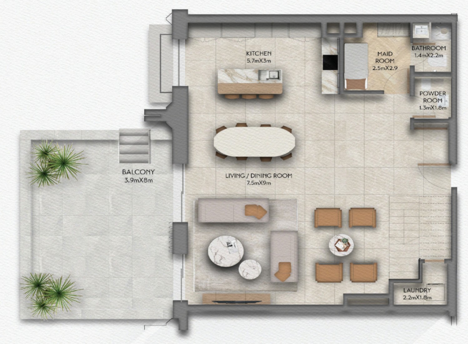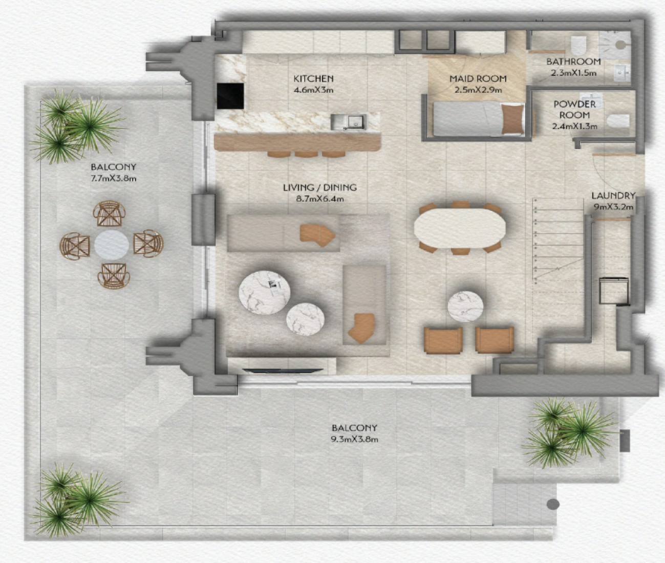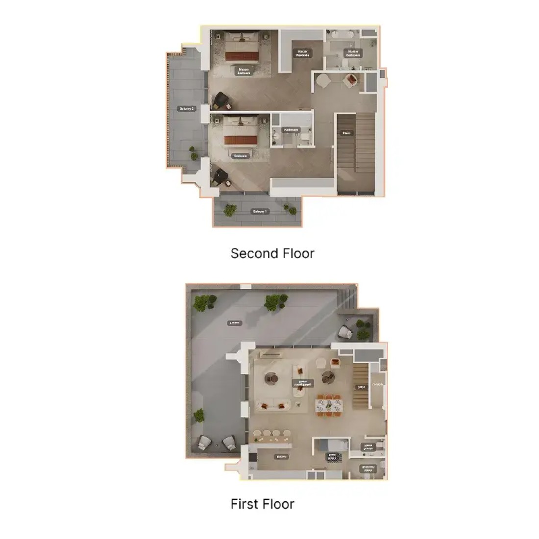 The collaboration of Woods Bagot, Mustard & Linen in crafting the interiors results in a captivating concept that elevates the living space. The opulent architectural craftsmanship, along with carefully positioned windows and balconies, contributes to a thoughtfully designed and aesthetically pleasing facade. This avant-garde development aspires to achieve Estidama 3 Pearl rating, Fitwel, and LEED Gold Certification, setting a benchmark for sustainability.