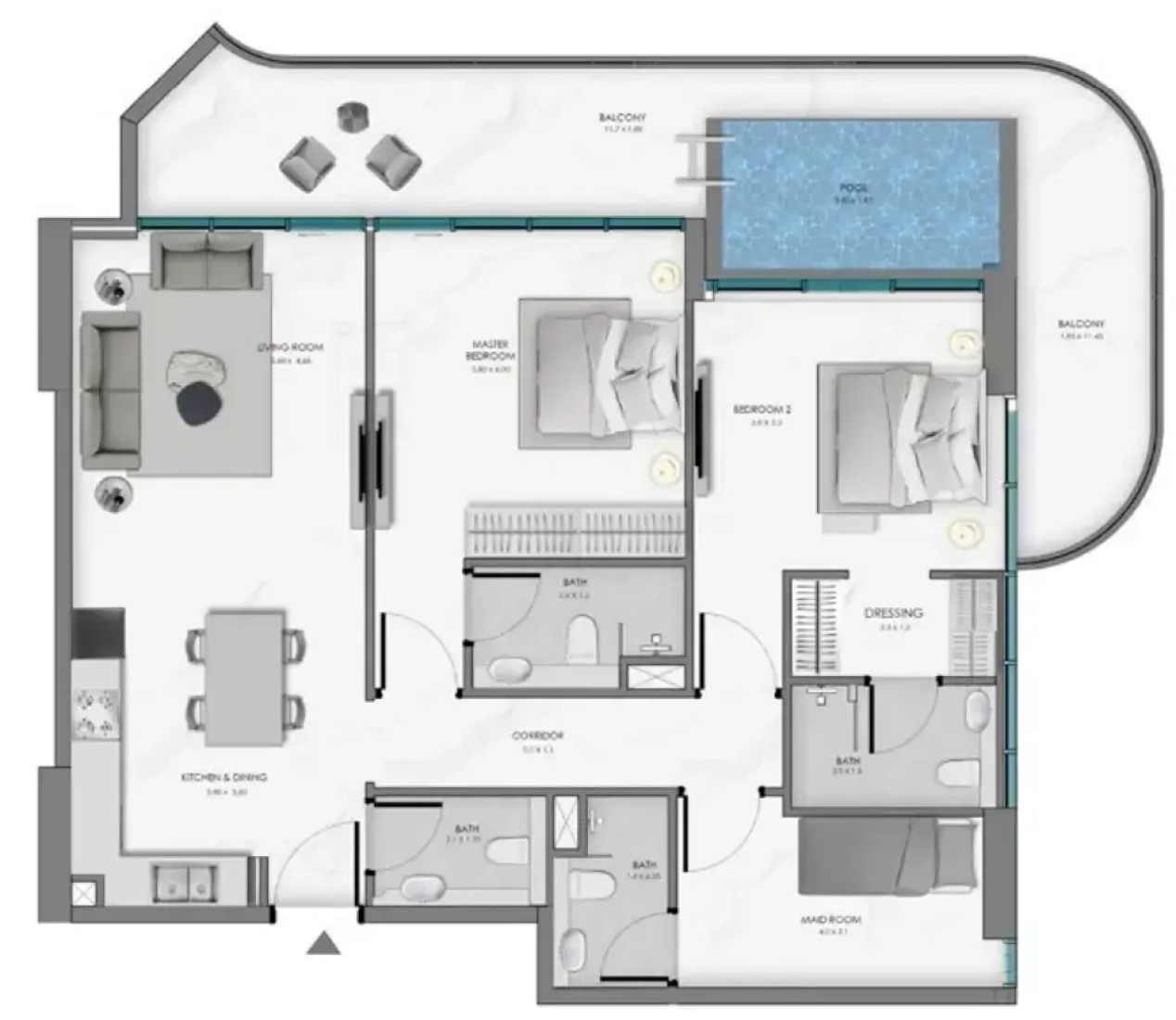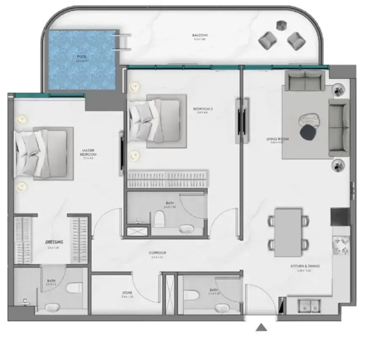 The residences are thoughtfully designed to offer maximum light, space, and tranquility. Expansive floor plans with high ceilings, large windows, and seamless indoor-outdoor transitions invite panoramic water views into every room. Interiors are crafted with premium materials, curated color palettes, and refined finishes, balancing luxurious aesthetics with day-to-day comfort. Private infinity pools, spa-like bathrooms, and soft ambient lighting further elevate the living experience into something deeply personal and restorative.