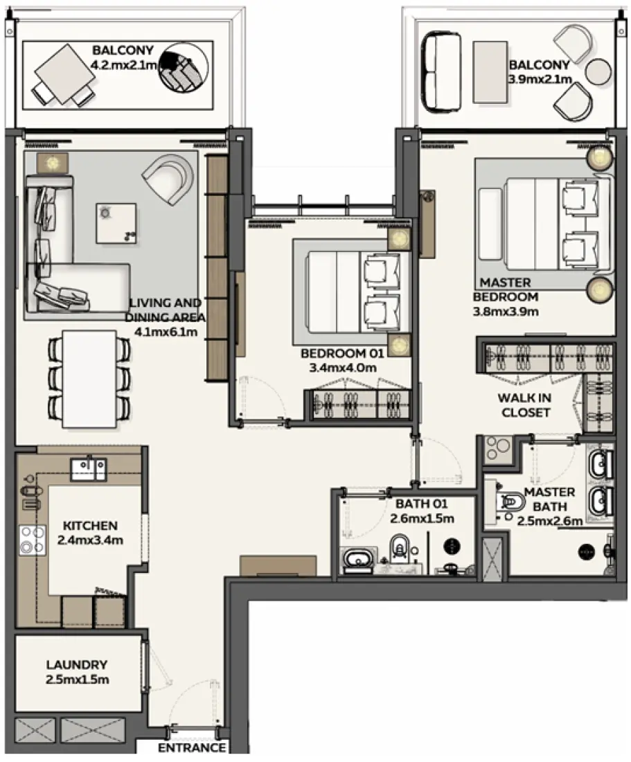 One- to four-bed units and loft apartments, with options for minor modifications to accommodate accessibility requirements. Sidr Residences is designed for residents who value cutting-edge technology and sustainability within a smart city environment. With home automation features across a 5G-connected site, Sidr offers a premium living experience for those seeking innovation without compromising on comfort or convenience.