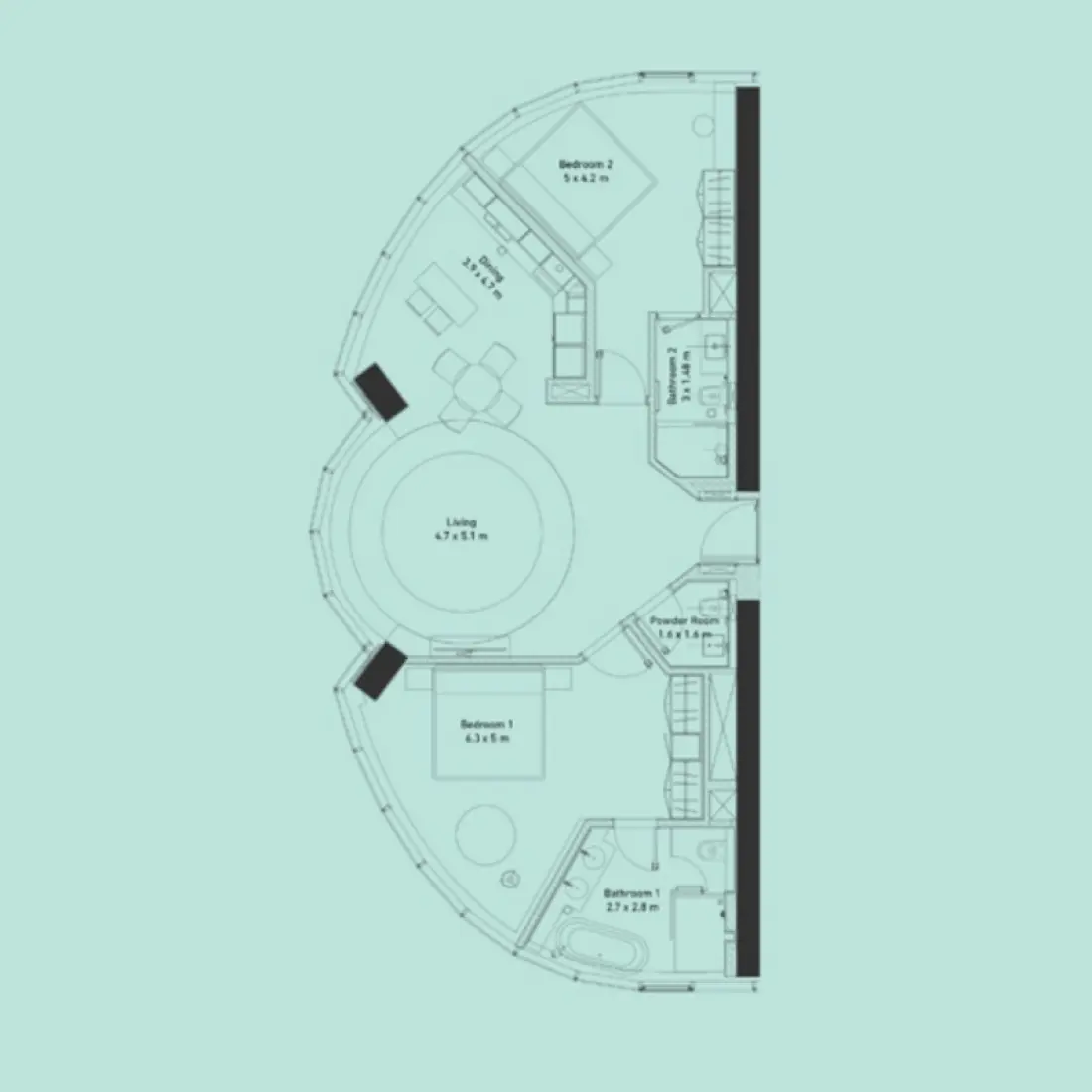The Pad brings South Beach to Dubai. Tilted at a 6.5° angle, enveloped in LED lighting, the chic and sophisticated Pad is the pinnacle of super-glamorous condo living, the most striking building on the Creek, presiding over the Burj Khalifa and the sea. During the day the unique facade shines and shimmers, reflecting the ethereal blend of sea, sun and sky. At night, this spectacular exterior blazes from hot to cool, from vibrant disco to the dark mystery and allure of desert stars.